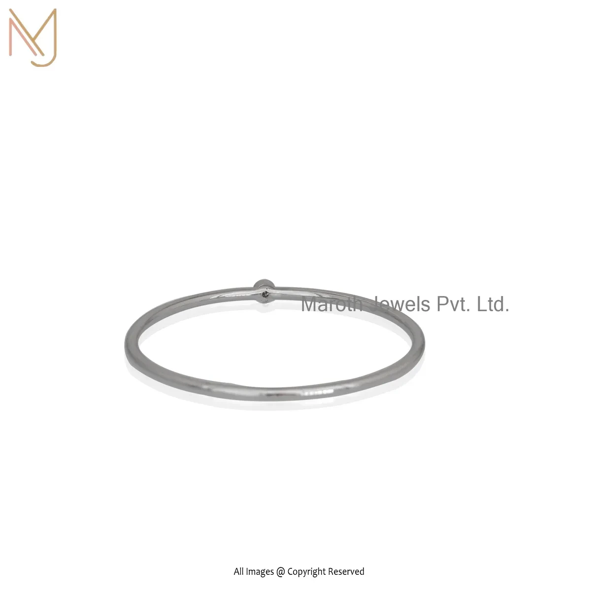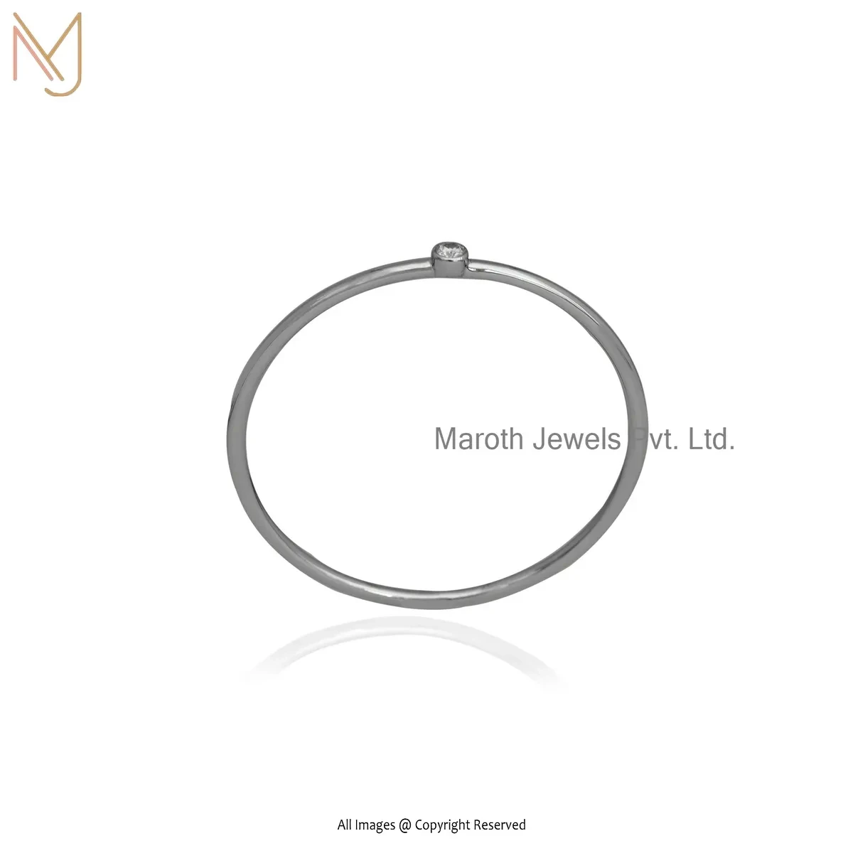 Private Lable 925 Silver White Gold Plated White Topaz & Diamond Round DIsc Bangle