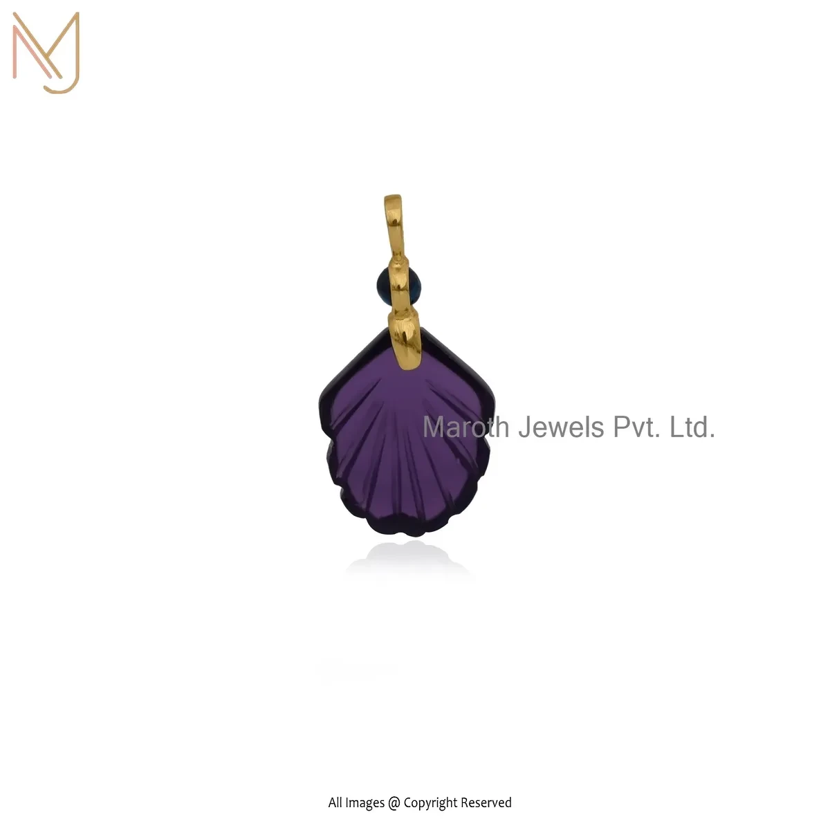 Private Lable 925 Silver Yellow Gold Plated Blue Cubic Zircon & Amethyst Gemstone Shell Pendant