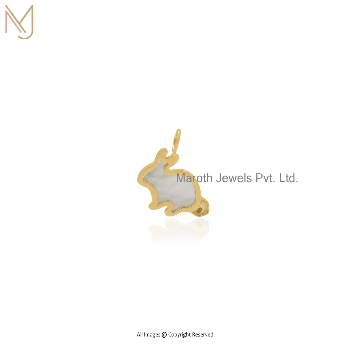 Private Lable 925 Silver Yellow Gold Plated Blue Cubic Zircon & Mother Of Pearl Rabbit Pendant