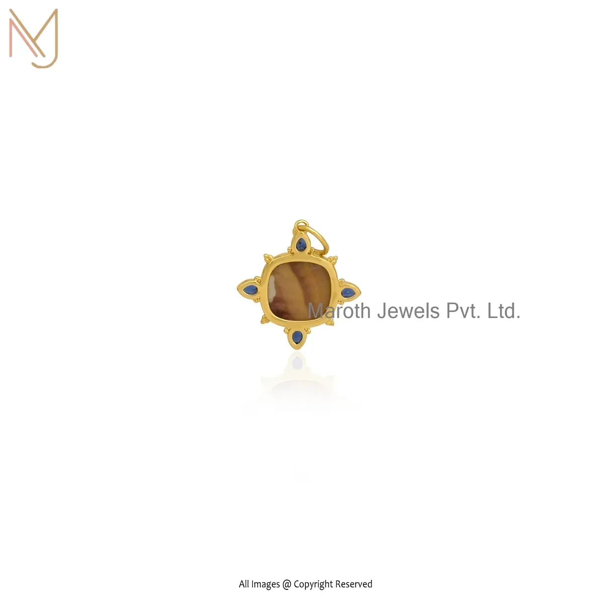 Private Lable 925 Silver Yellow Gold Plated Blue Cubic Zircon & Mother Of Pearl Square Pendant