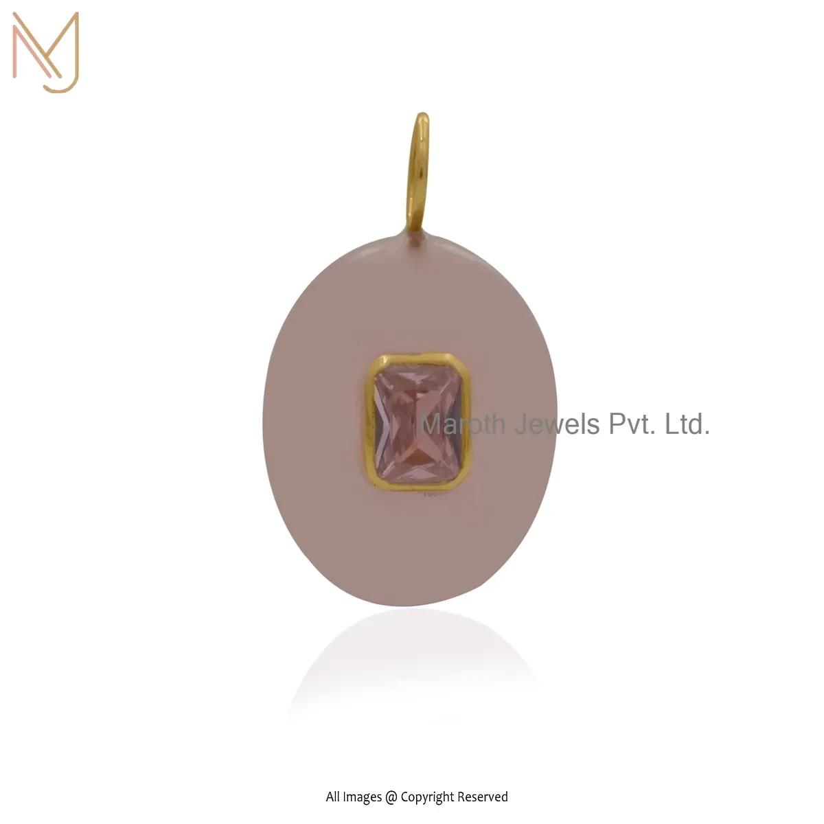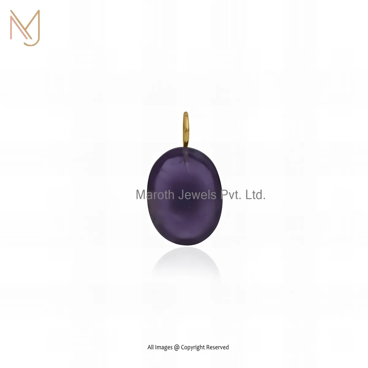 Private Lable 925 Silver Yellow Gold Plated Cubic Zircon & Amethyst Gemstone Oval Pendant