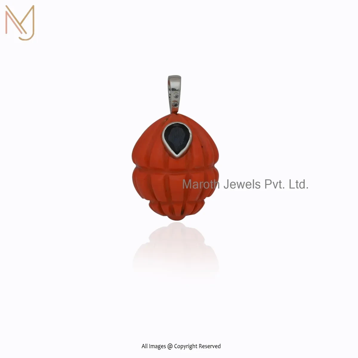 Private Lable 925 Silver Yellow Gold Plated Cubic Zircon & Black Onyx Gemstone Shell Pendant