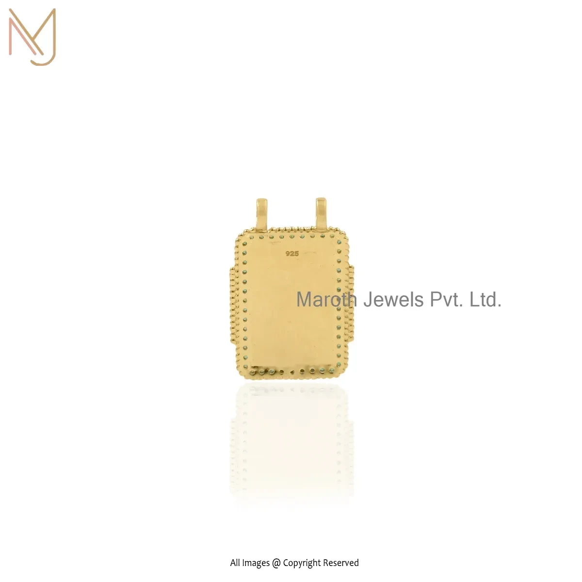 Private Lable 925 Silver Yellow Gold Plated Cubic Zircon & Enamel Gemstone Square Evil Eye Charm Pendant