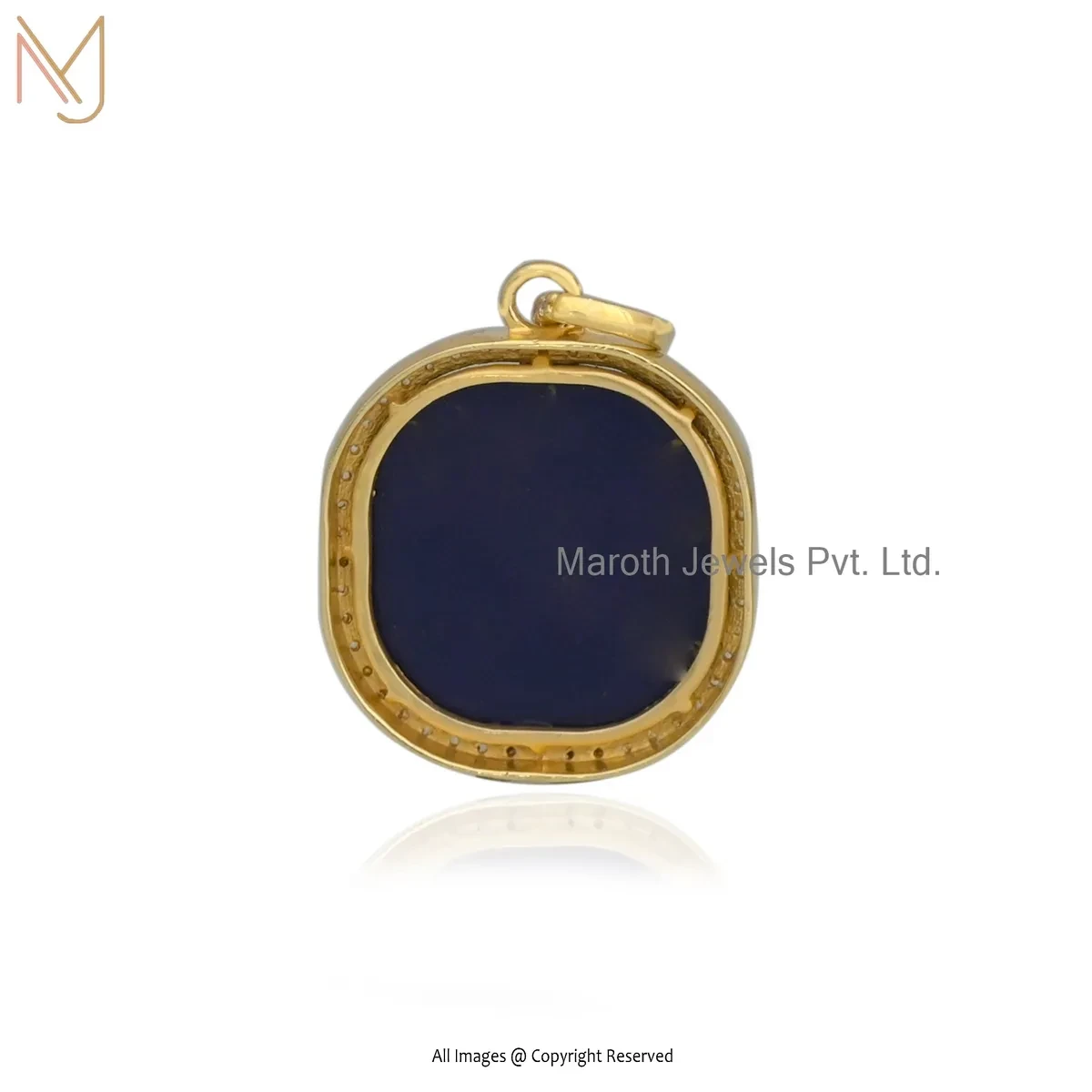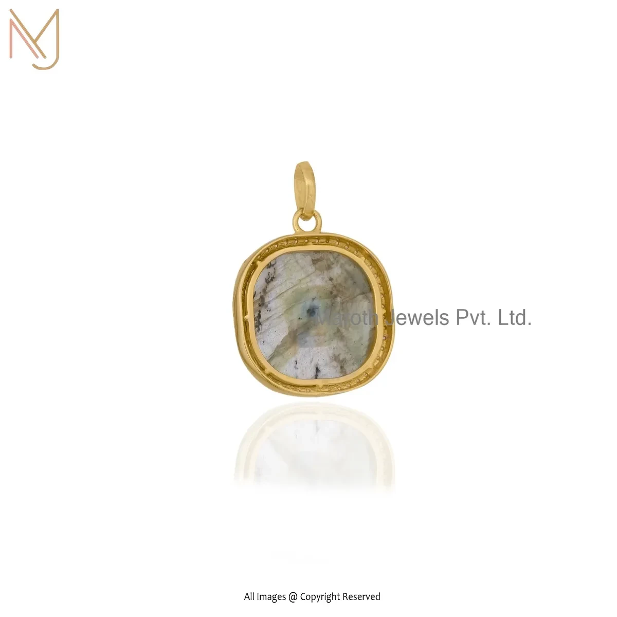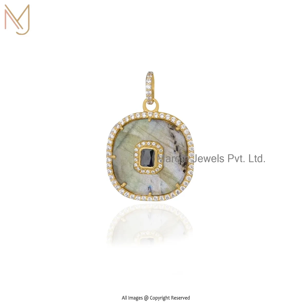 Private Lable 925 Silver Yellow Gold Plated Cubic Zircon & Labradorite Gemstone Square Pendant