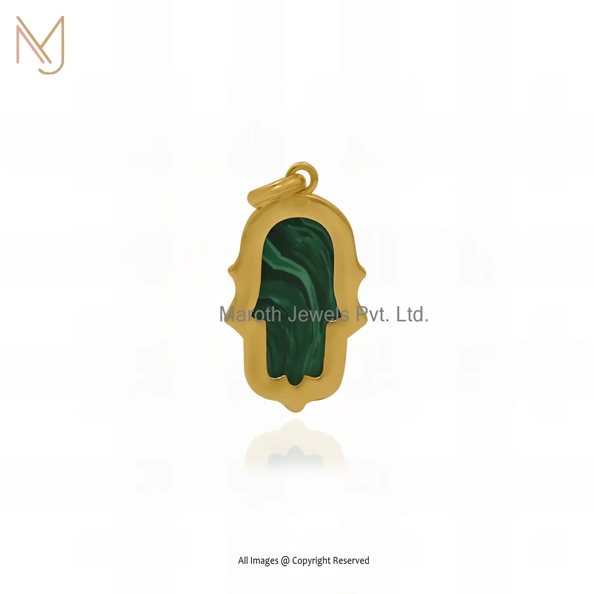Private Lable 925 Silver Yellow Gold Plated Cubic Zircon & Malachite Hamsa Hand Charm Pendant