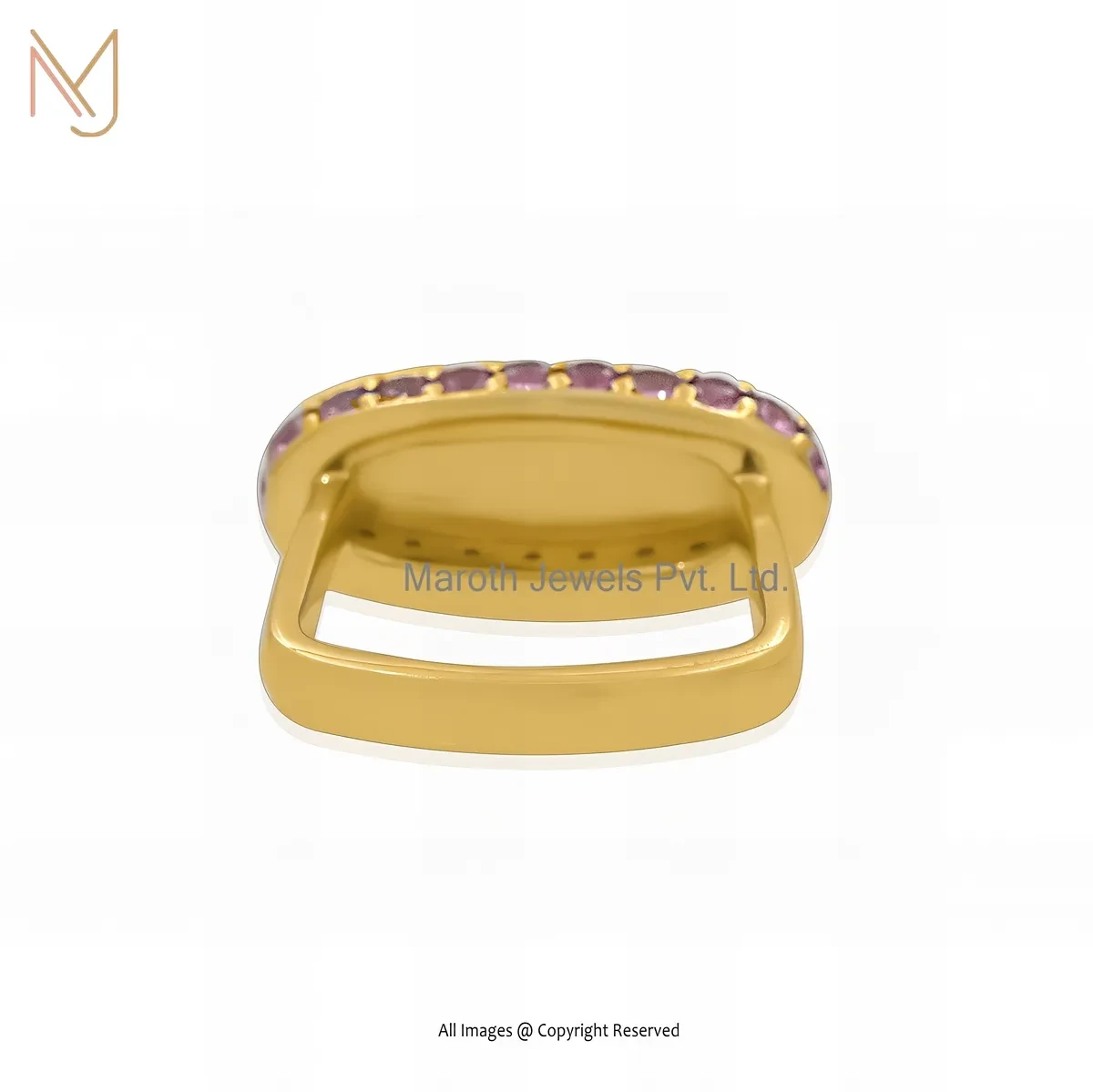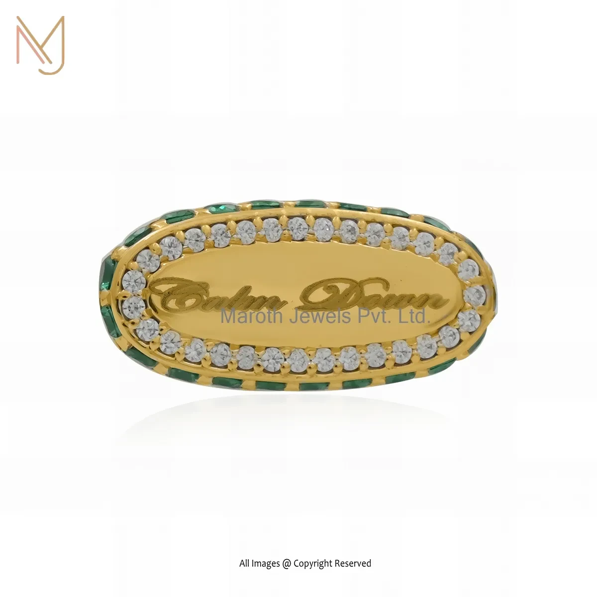Private Lable 925 Silver Yellow Gold Plated Cubic Zircon Oval Shaped Initial Letter Ring