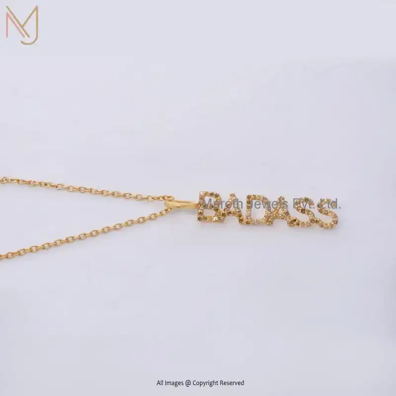 Private Lable 925 Silver Yellow Gold Plated Diamond BADASS Name Initials Pendant Jewelry