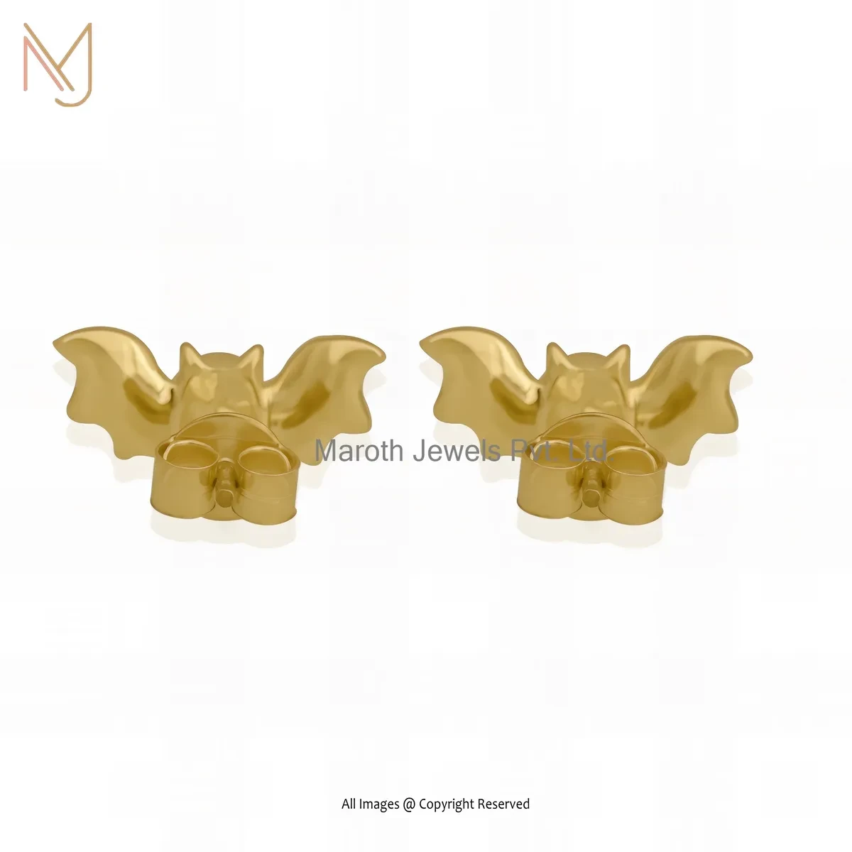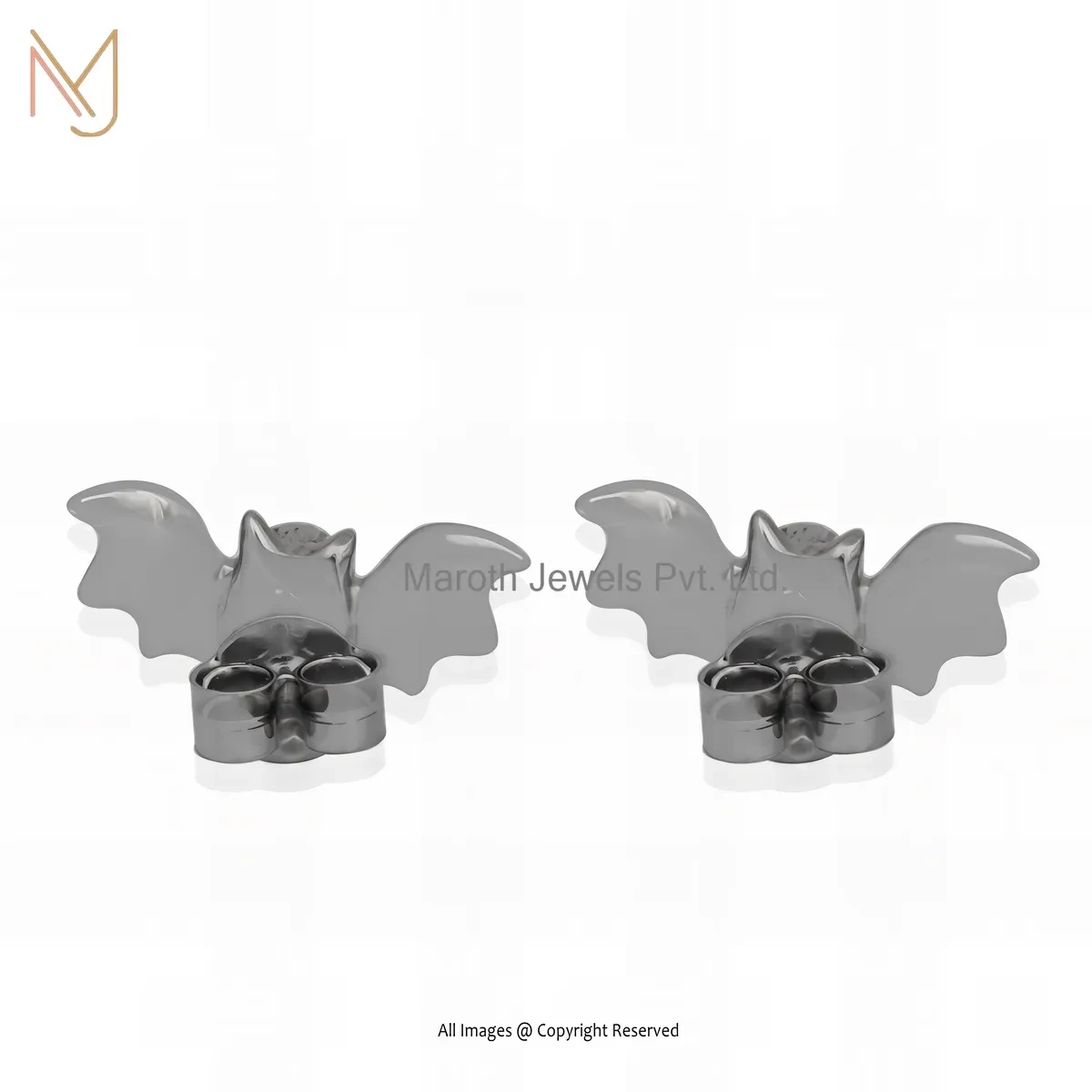 Private Lable 925 Silver Yellow Gold Plated Diamond & Black Cubic Zircon Bat Studs Earring
