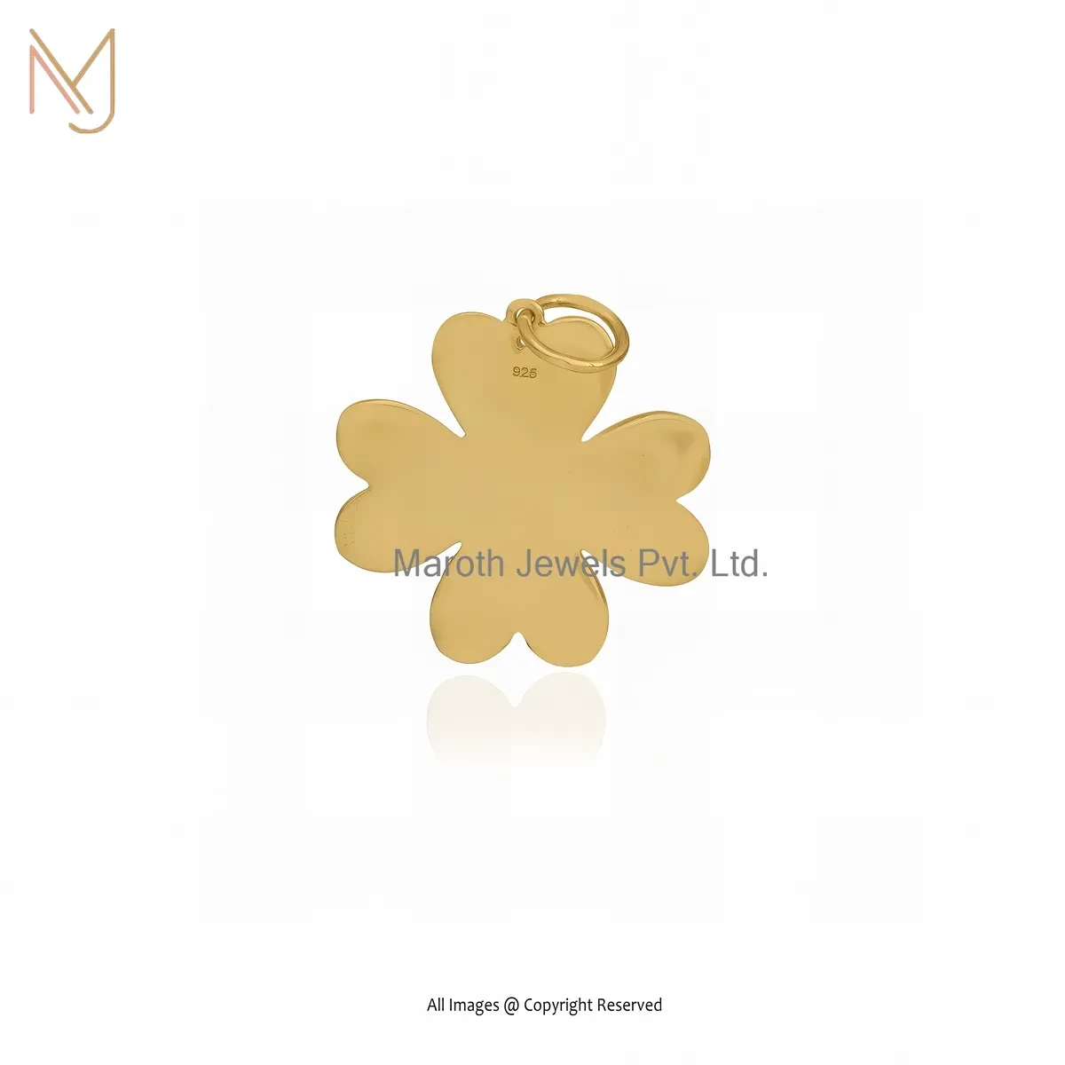 Private Lable 925 Silver Yellow Gold Plated Diamond & Cubic Zircon Heart Leaf Charm Pendant