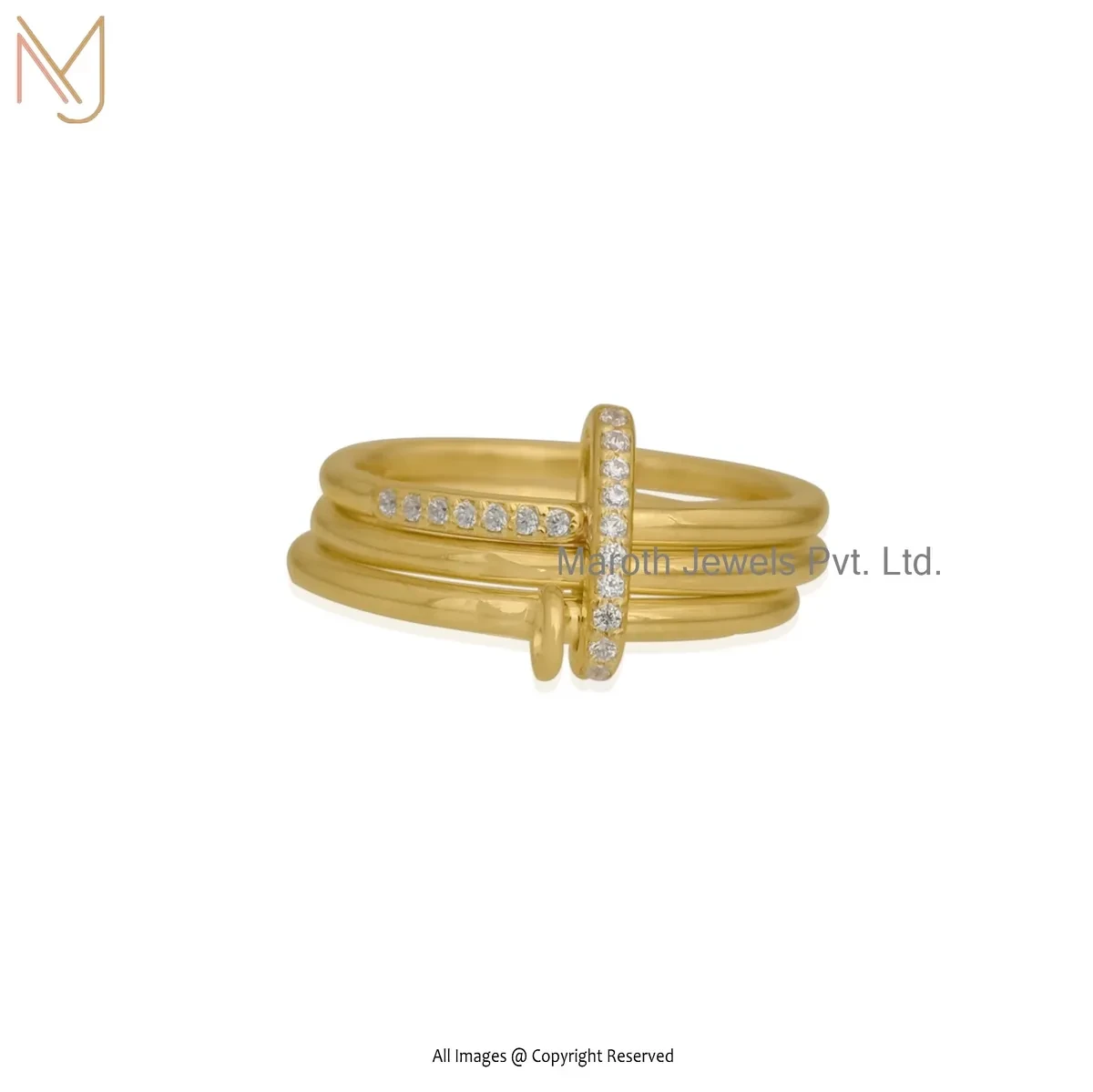Private Lable 925 Silver Yellow Gold Plated Diamond & Moissanite Band Connector Ring