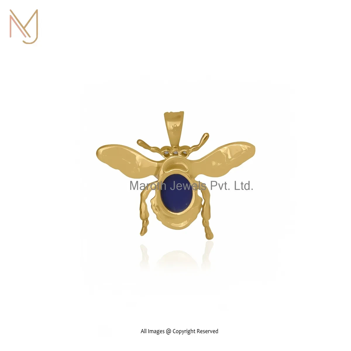 Private Lable 925 Silver Yellow Gold Plated Lapiz Lazuli And Cubic Zircon Honey Bee Pendant