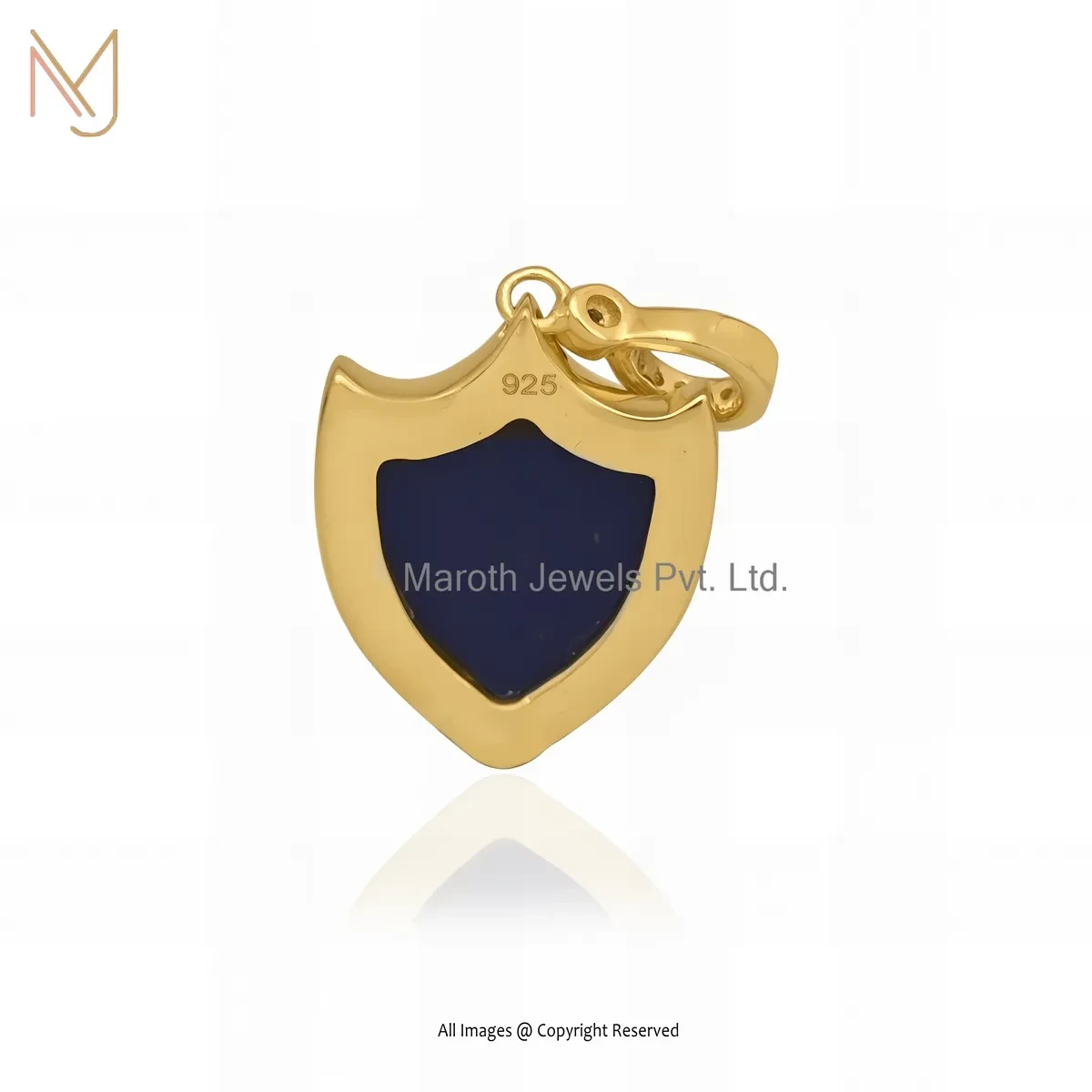 Private Lable 925 Silver Yellow Gold Plated Lapiz Lazuli & Cubic Zircon Shield Pendant