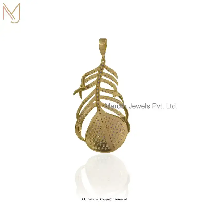 Private Lable 925 Silver Yellow Gold Plated Pink Sapphire & Blue Sapphire Cubic Zircon Peacock Feather Charm Pendant
