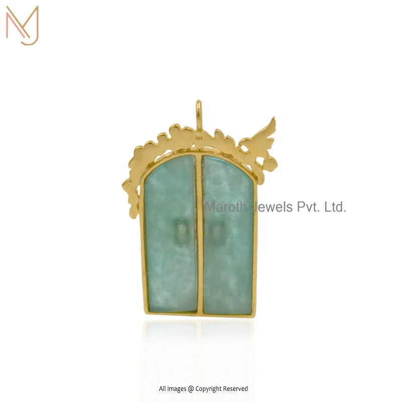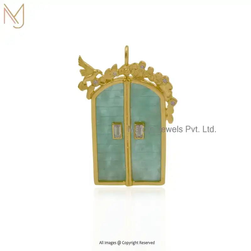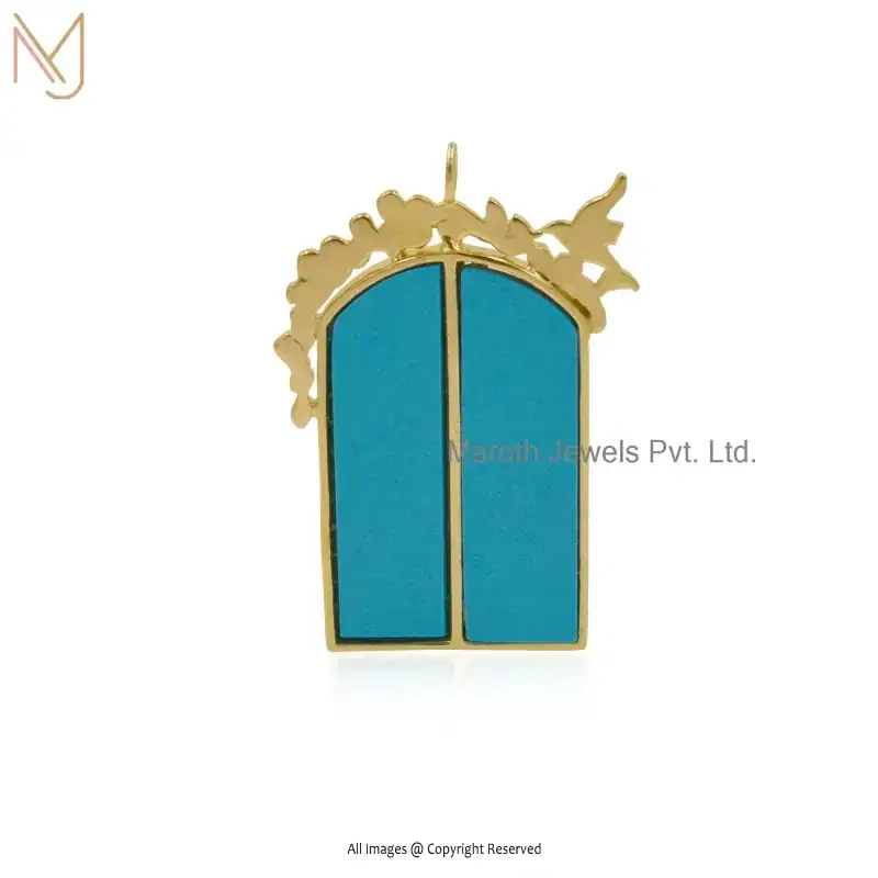 Private Lable 925 Silver Yellow Gold Plated Turquoise & White Topaz Handmade Gemstone Door Pendant