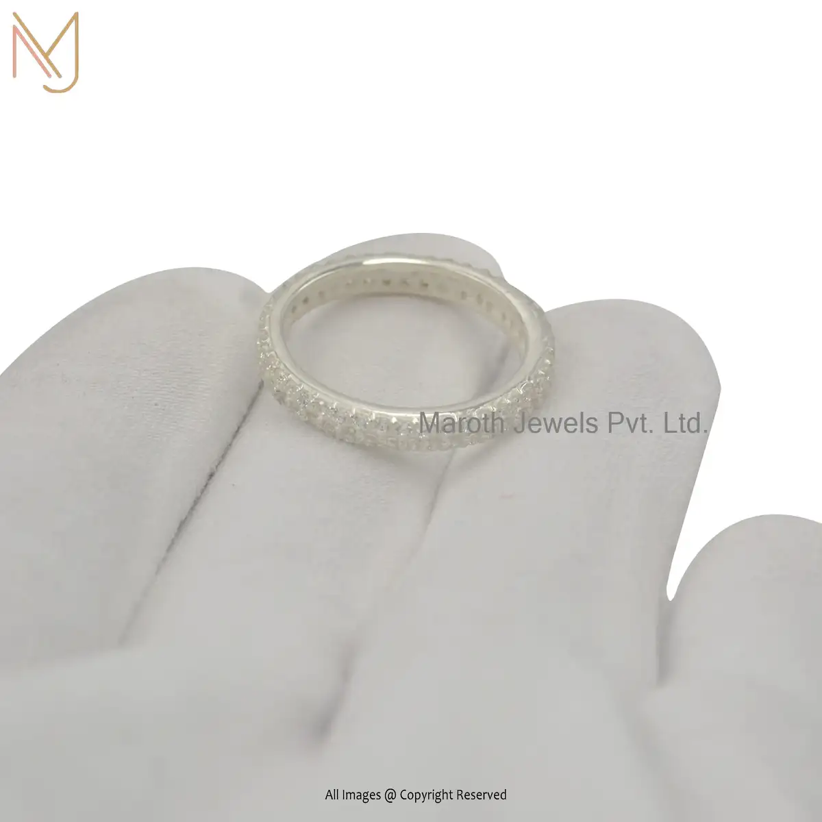 Private Lable 925 Sterling Silver Natural Silver Cubic Zircon Band Ring Jewelry