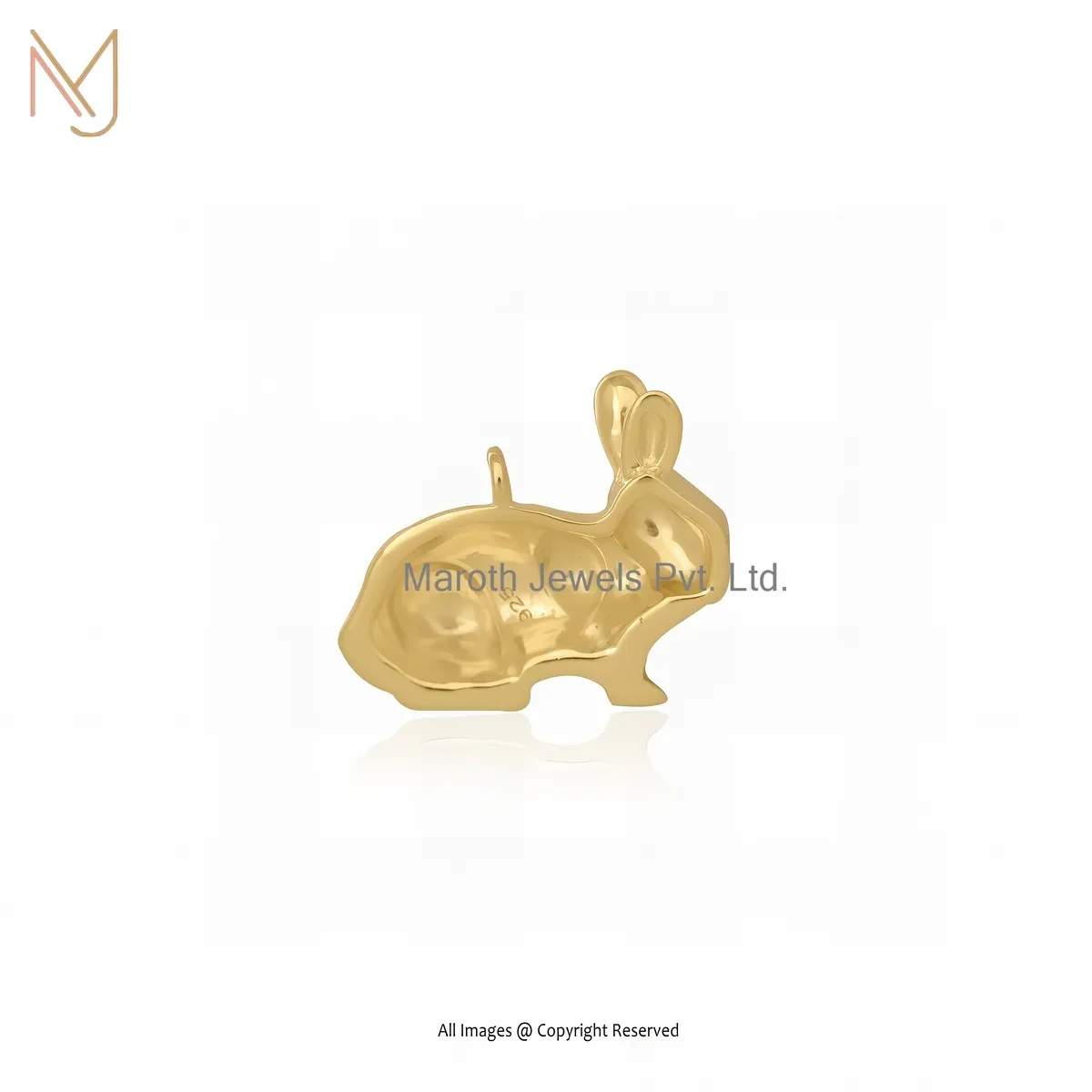 Private Lable 925 Sterling Silver Yellow Gold Plated Black Cubic Zircon Rabbit Charm Pendant
