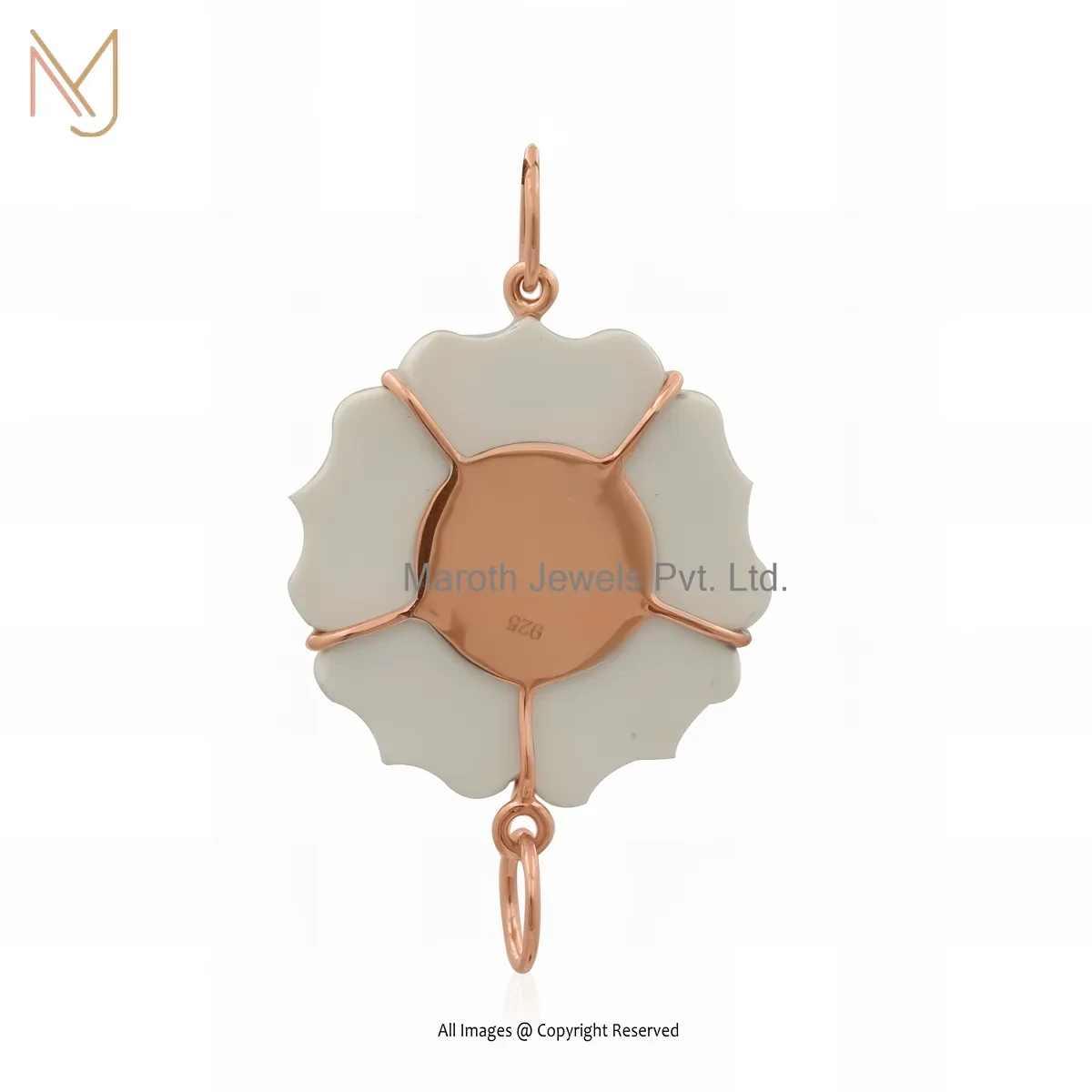 Wholesale 14K Rose Gold Cubic Zircon & White Coral Gemstone Flower Pendant