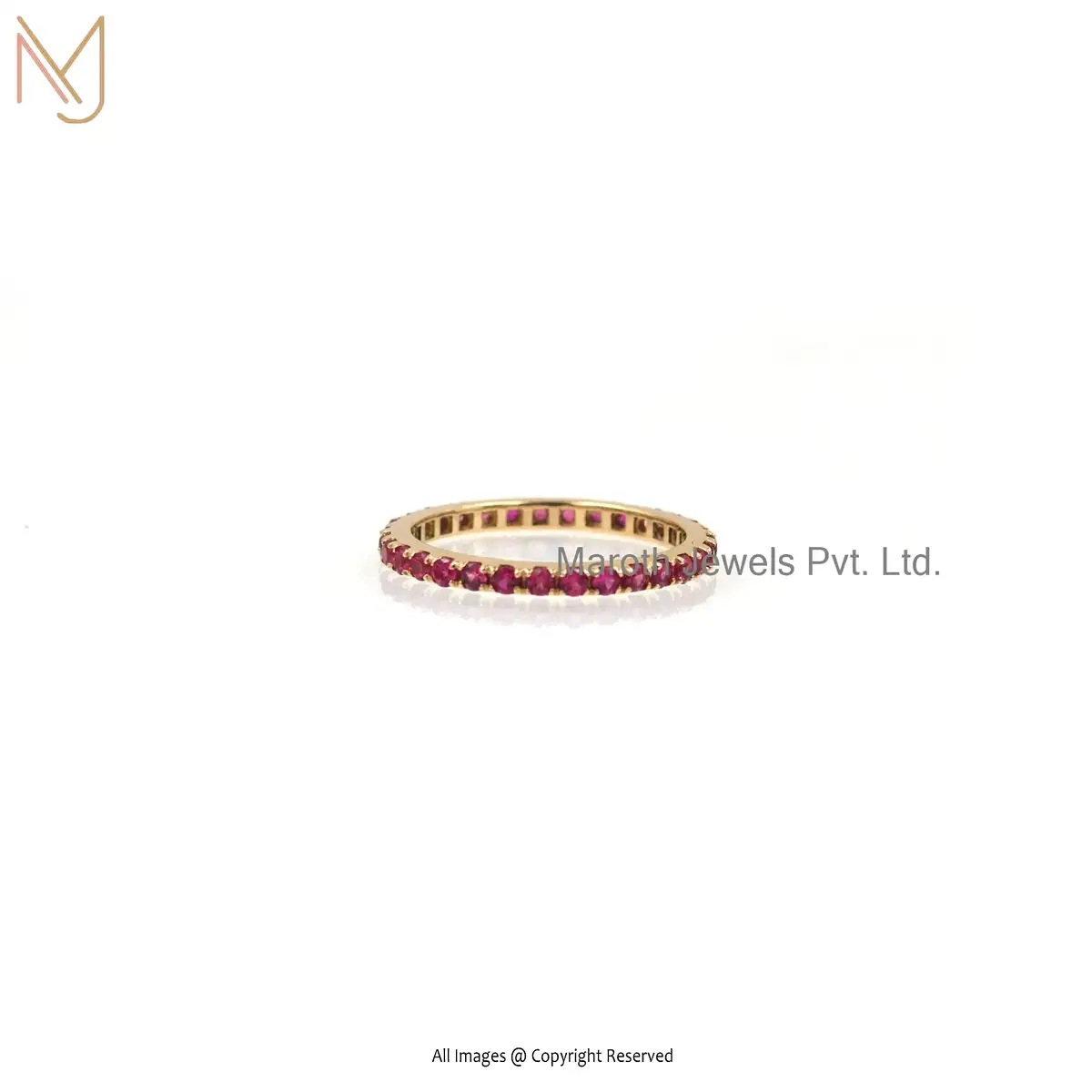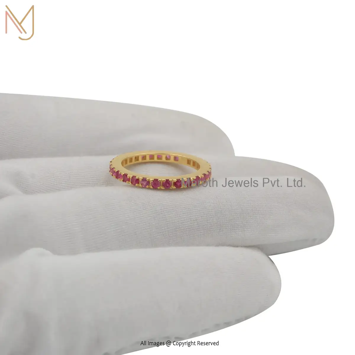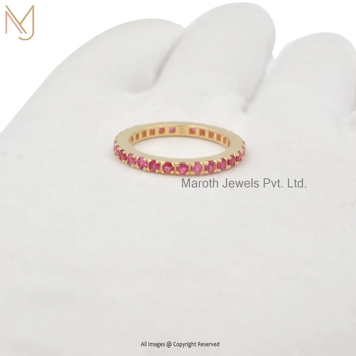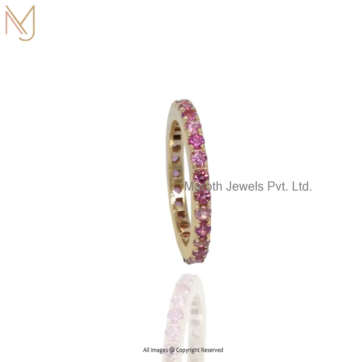 Wholesale 14K Solid Yellow Gold Pink Sapphire Gemstone Band Ring