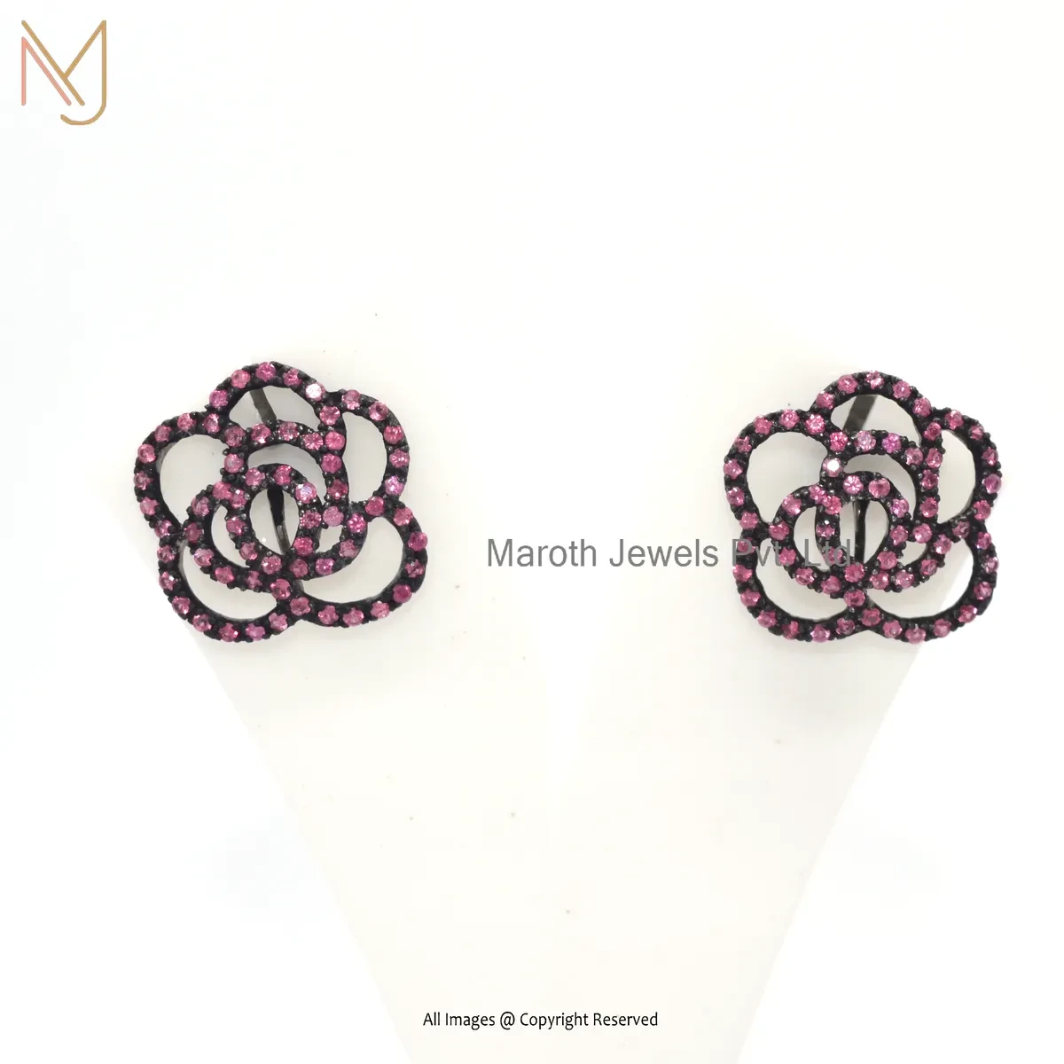 Wholesale 14K White Gold Pave Diamond Ruby Gemstone Flower Design Stud Earring