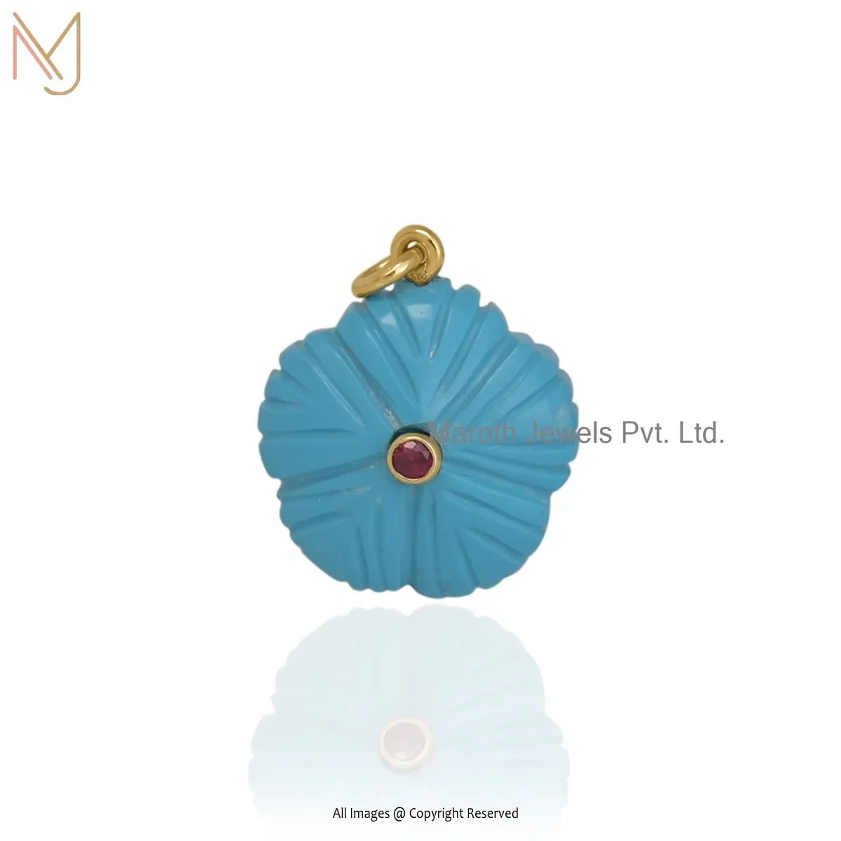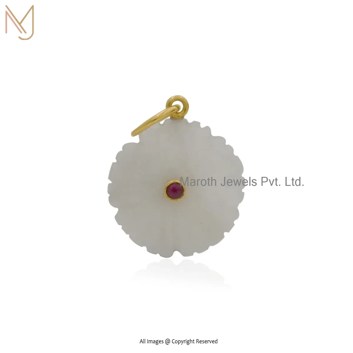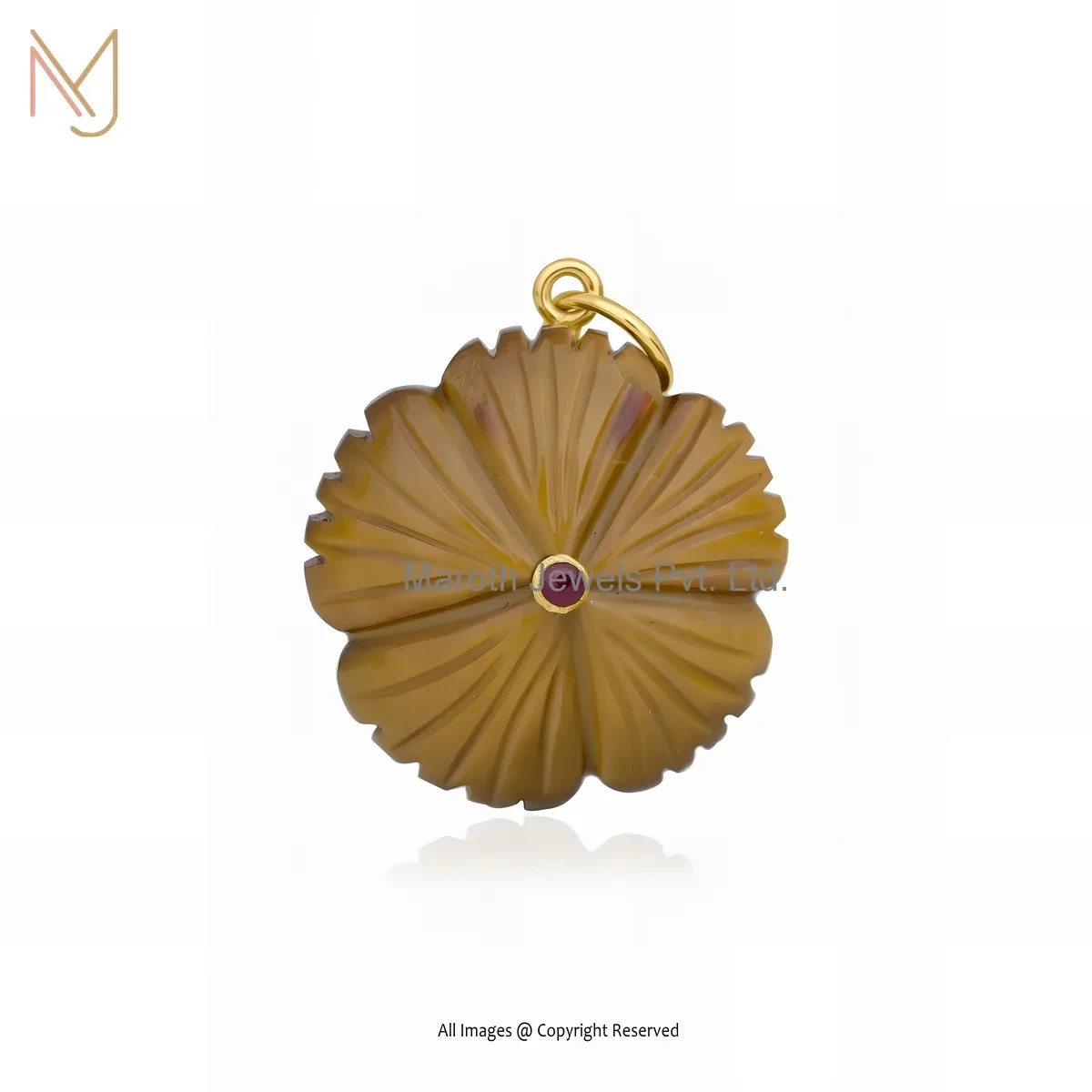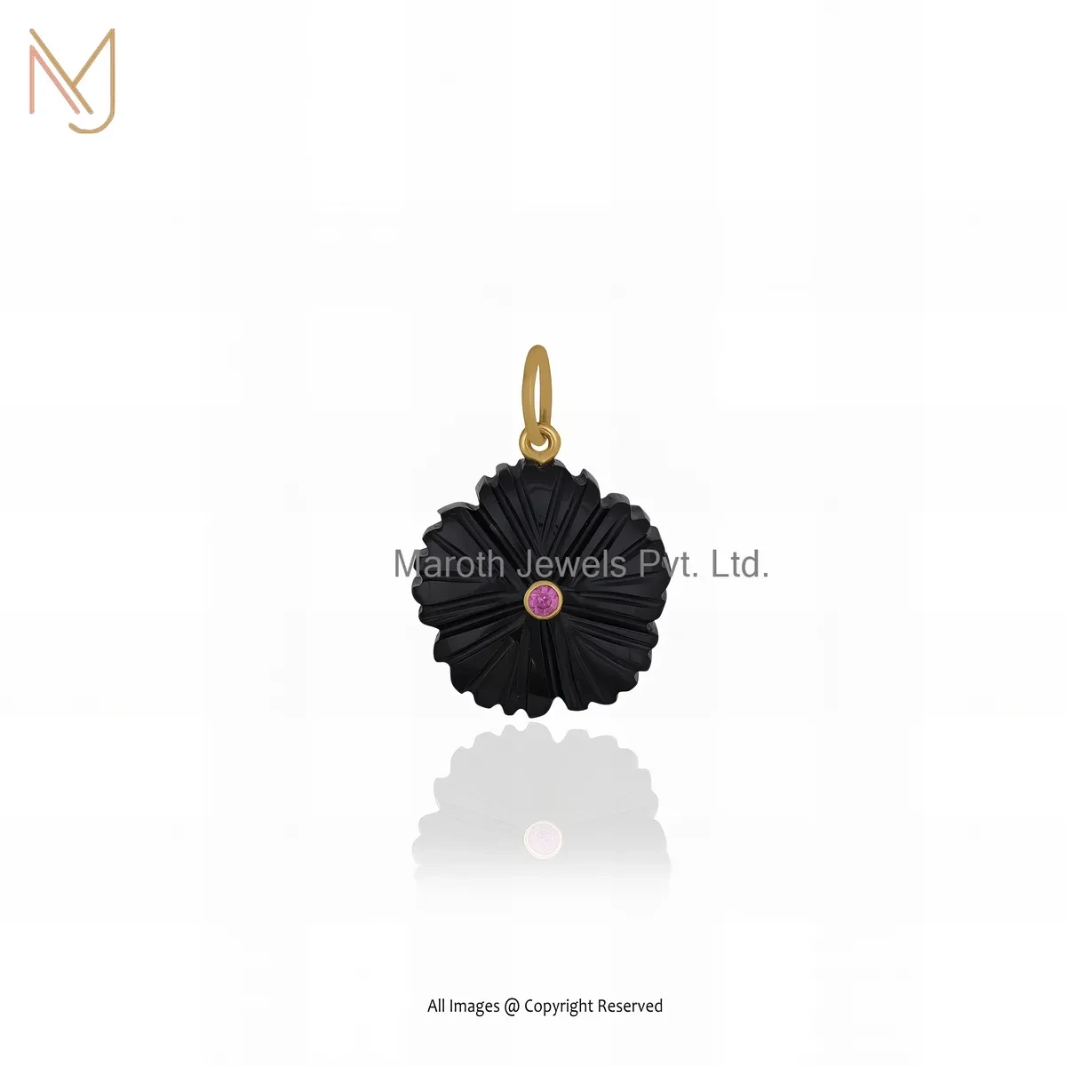 Wholesale 14K Yellow Gold Amethyst & Ruby Cubic Zircon Flower Pendant