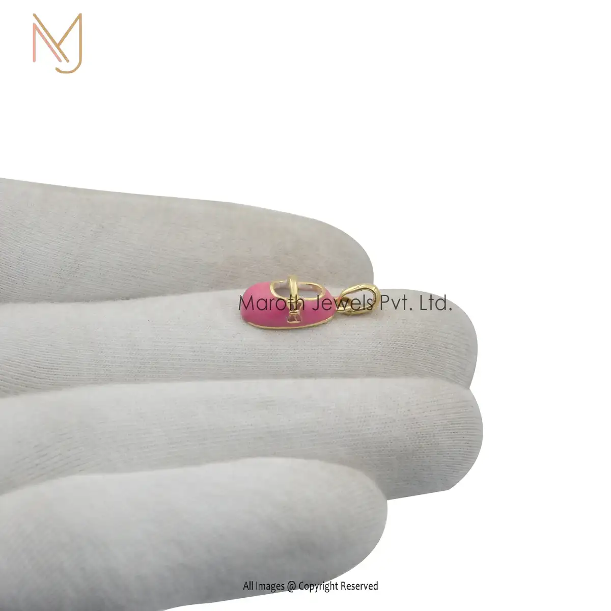 Wholesale 14K Yellow Gold Baby Shoe Pink Enamel Charm Pendant Jewelry