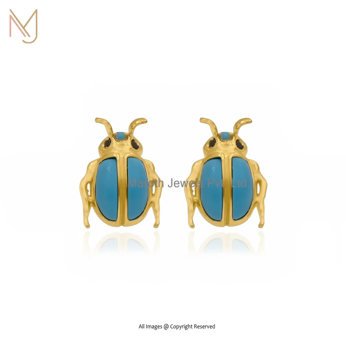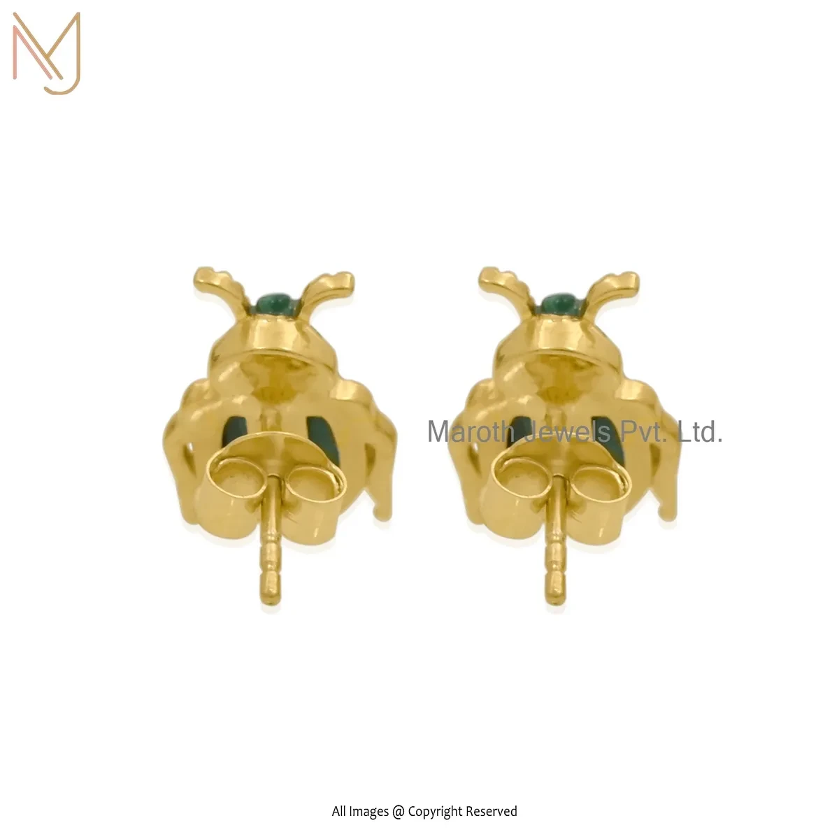 Wholesale 14K Yellow Gold Black Cubic Zircon Gemstone Scarab Stud Earring