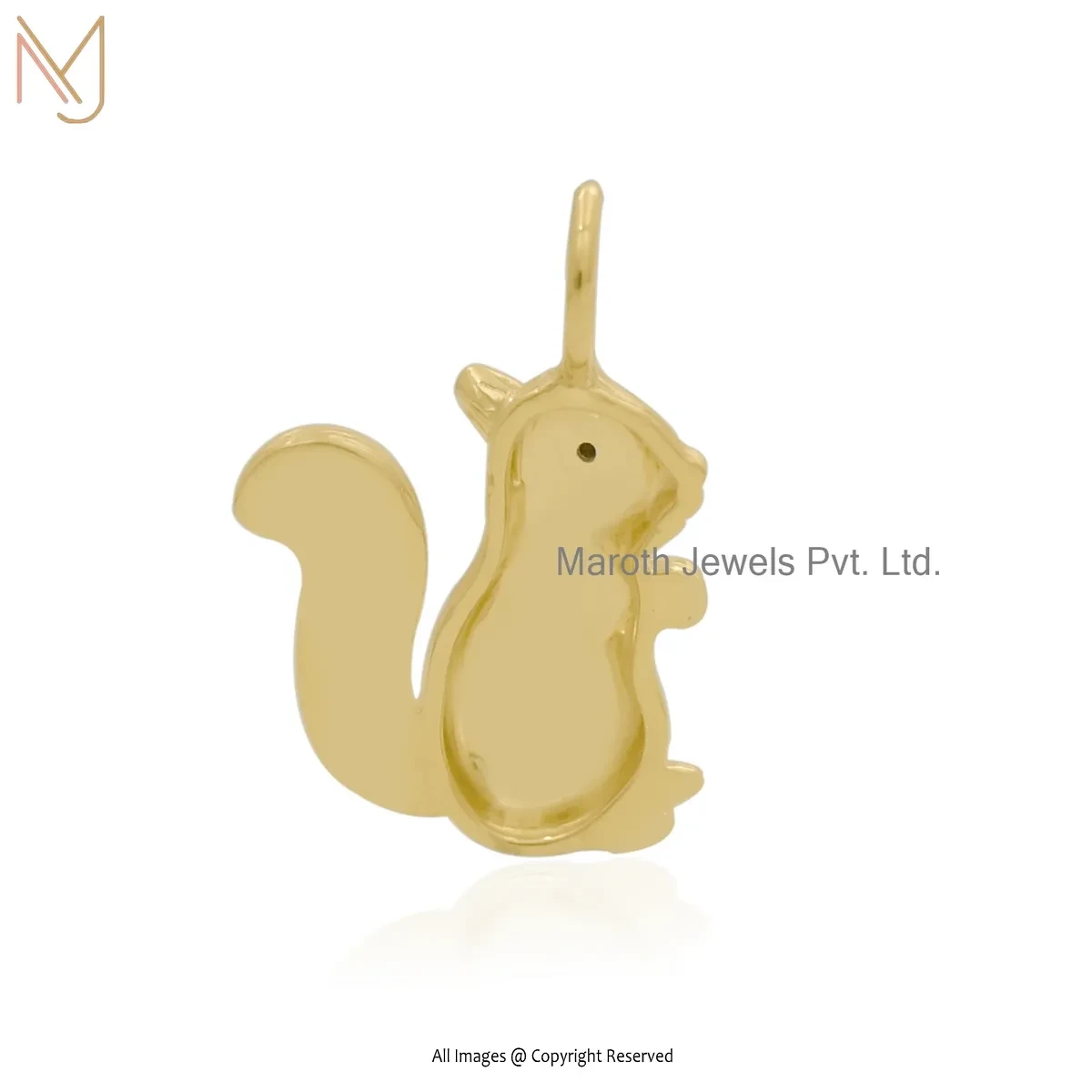 Wholesale 14K Yellow Gold Black Cubic Zircon Squirrel Charm Pendant