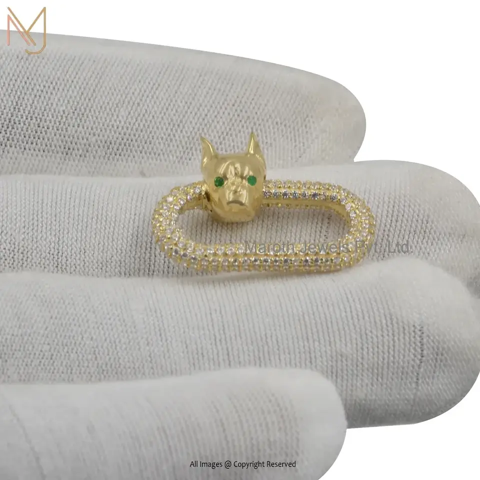 Wholesale 14K Yellow Gold Cubic Zircon And Emerald Bulldog Skull Carabiner Lock