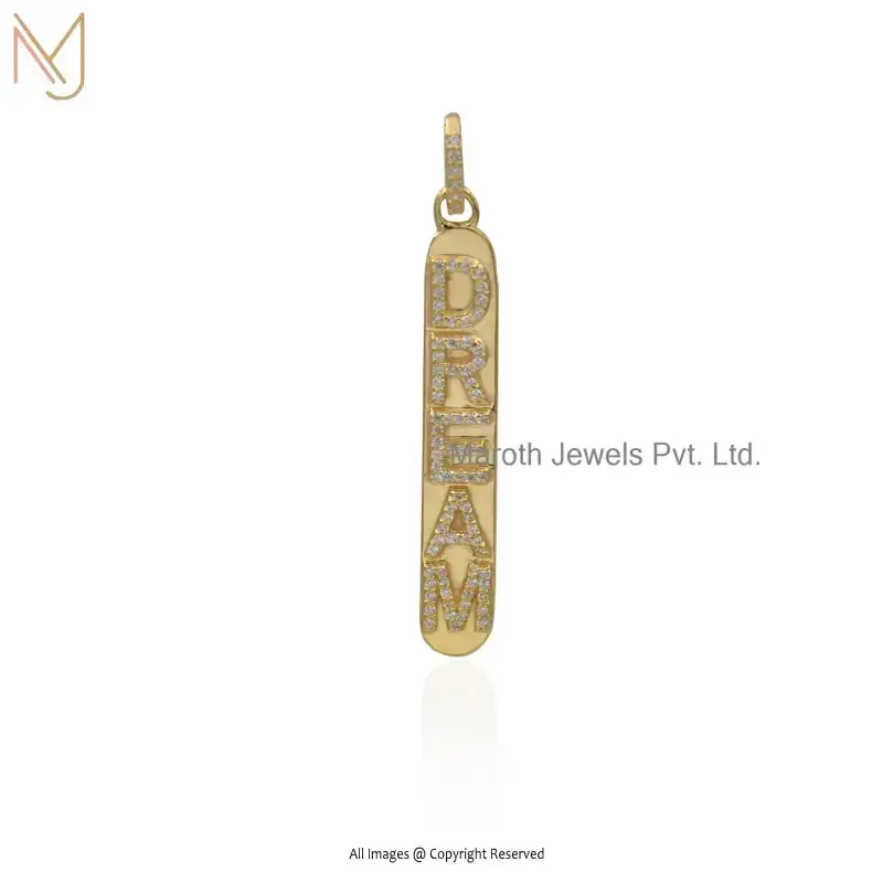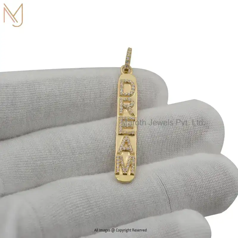 Wholesale 14K Yellow Gold Cubic Zircon DREAM Name Initials Bar Pendant Jewelry