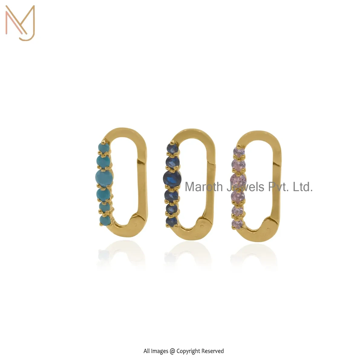 Wholesale 14K Yellow Gold Cubic Zircon Oval Enhancer Lock Charm Holder Jewelry