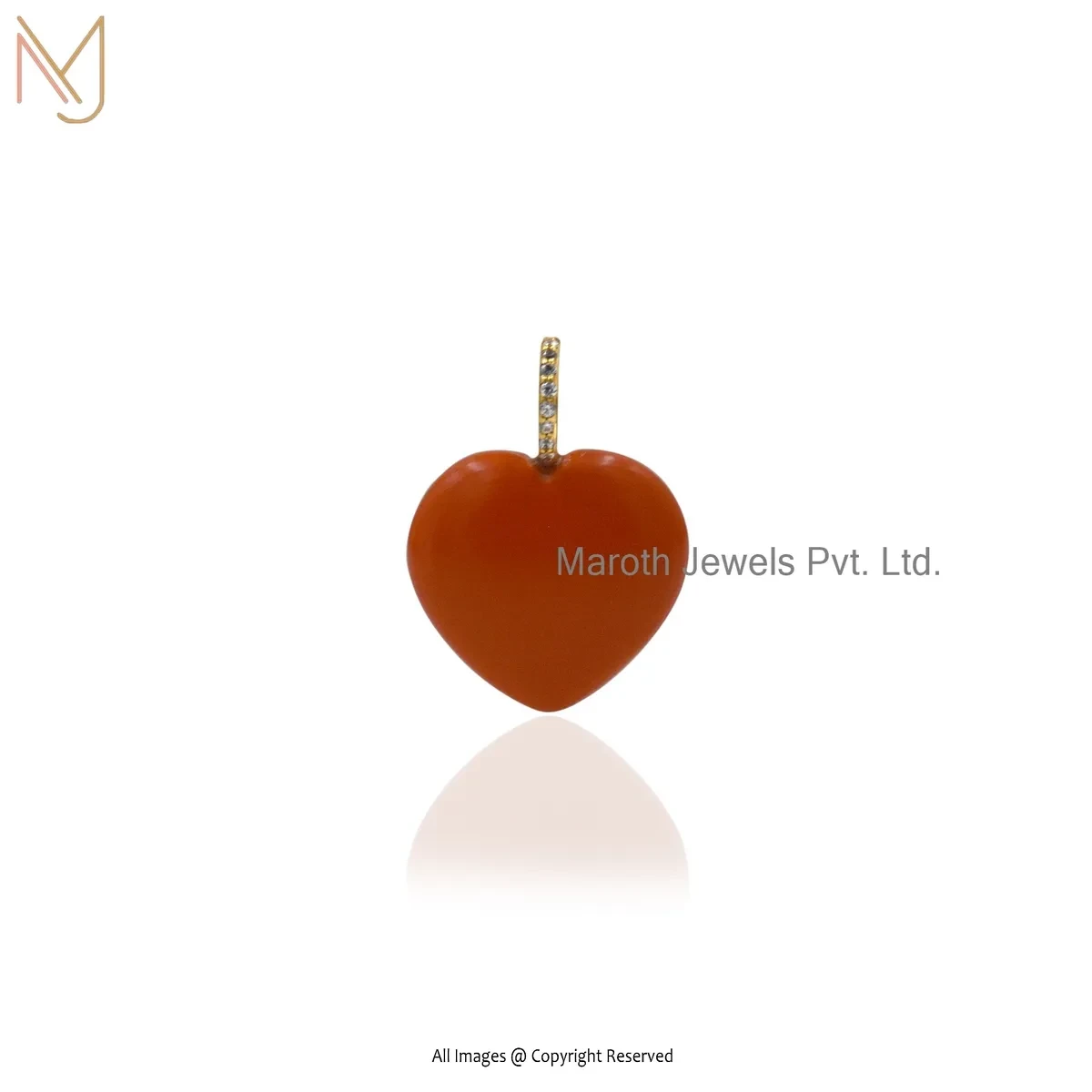 Wholesale 14K Yellow Gold Cubic Zircon & Red Coral Heart Pendant Jewelry