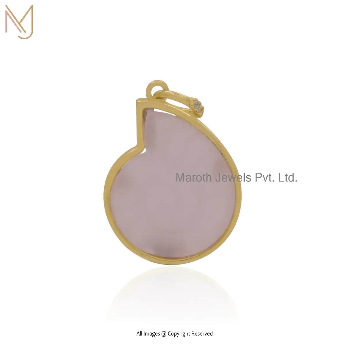 Wholesale 14K Yellow Gold Cubic Zircon & Rose Quartz Kodi Shell Pendant