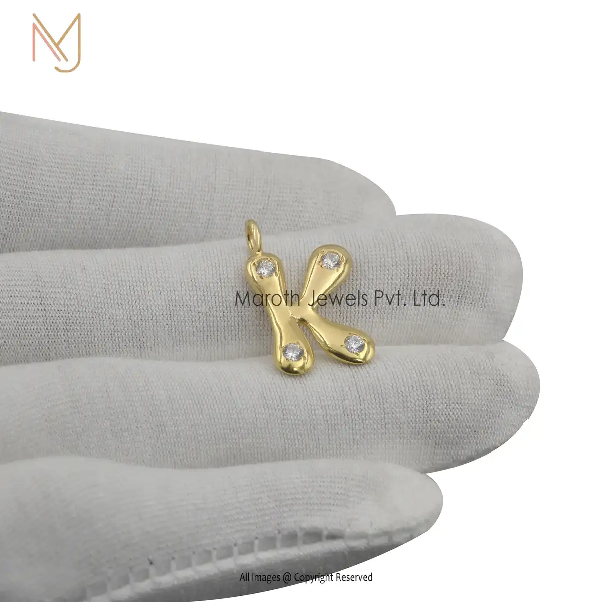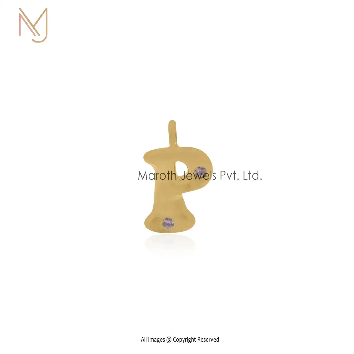 Wholesale 14K Yellow Gold CZ & White topaz Letter P Pendant Jewelry