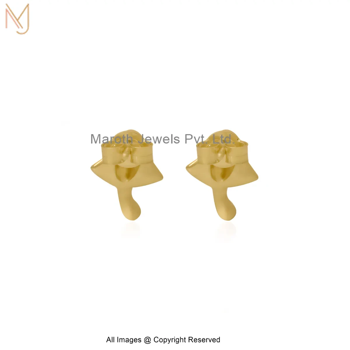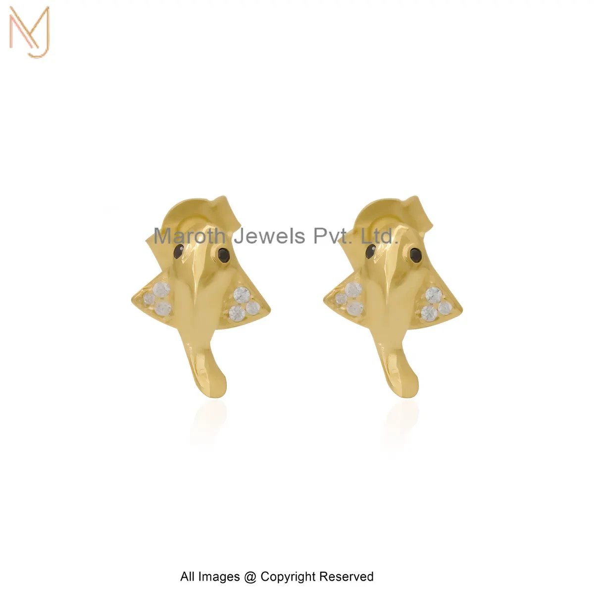 Wholesale 14K Yellow Gold Diamond Cubic Zircon Fish Shape Gold Stud Earring