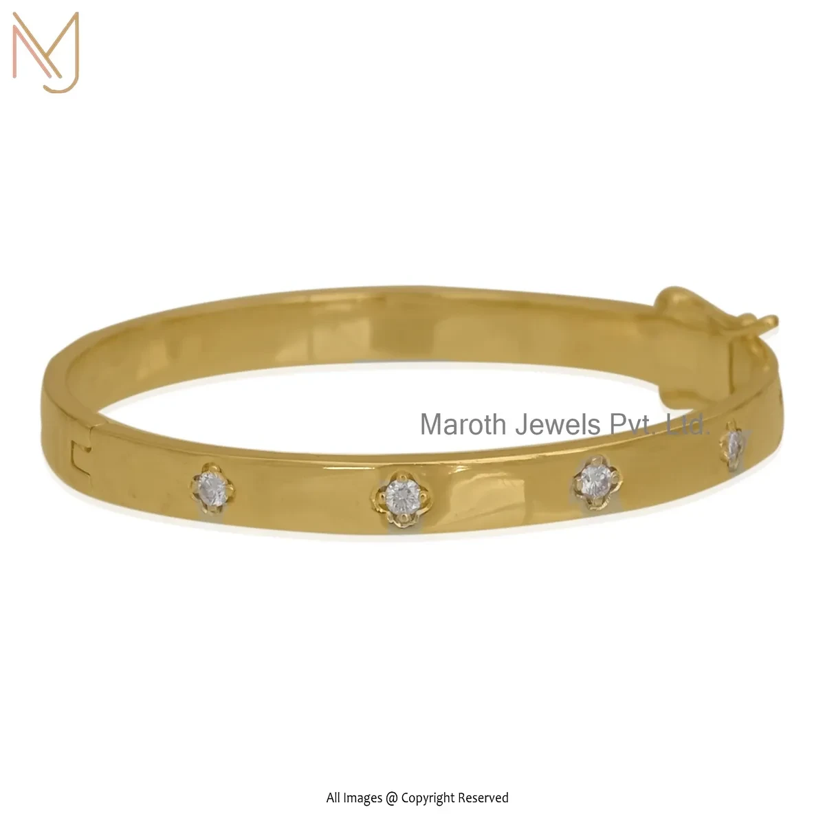 Wholesale 14K Yellow Gold Diamond & Moissanite Flush Set Bangle