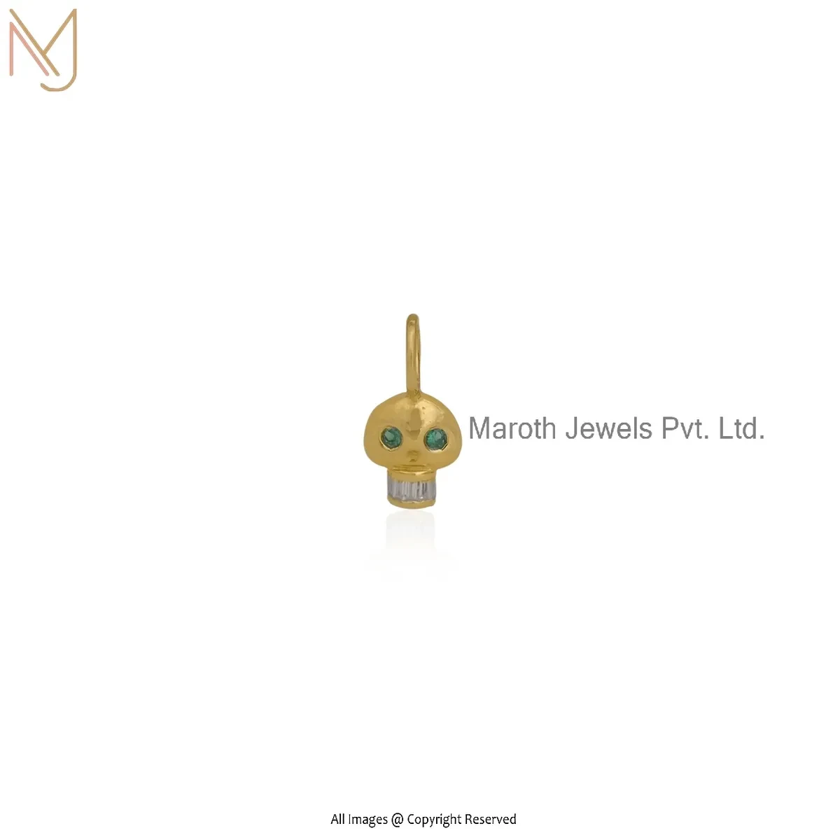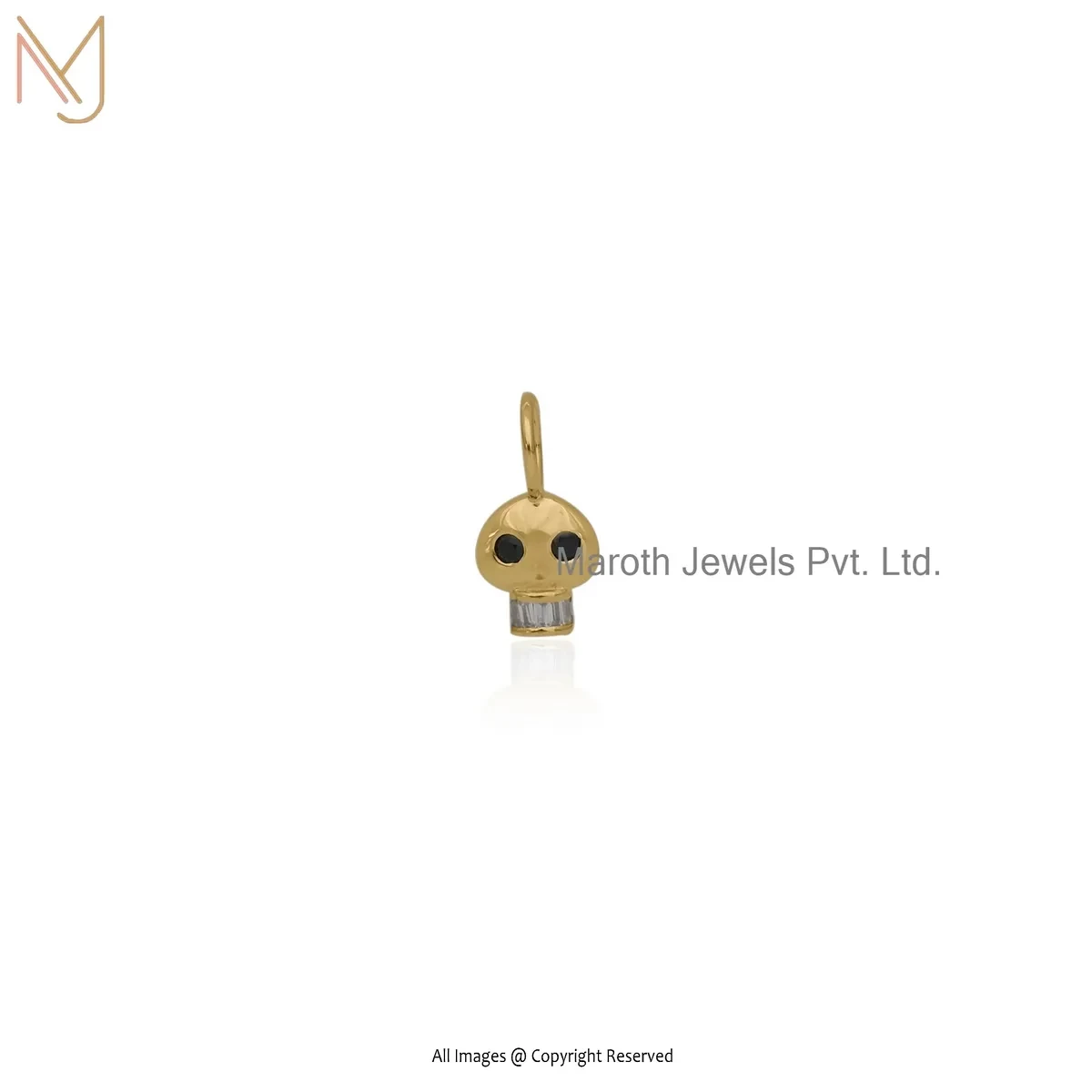 Wholesale 14K Yellow Gold Diamond & Ruby Gemstone Baguette Skull Pendant