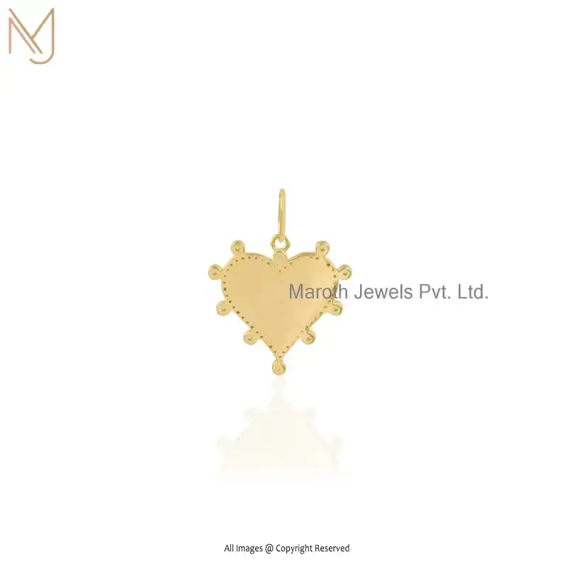 Wholesale 14K Yellow Gold Heart Shape & Enamel White Cubic Zircon Gemstone Pendant