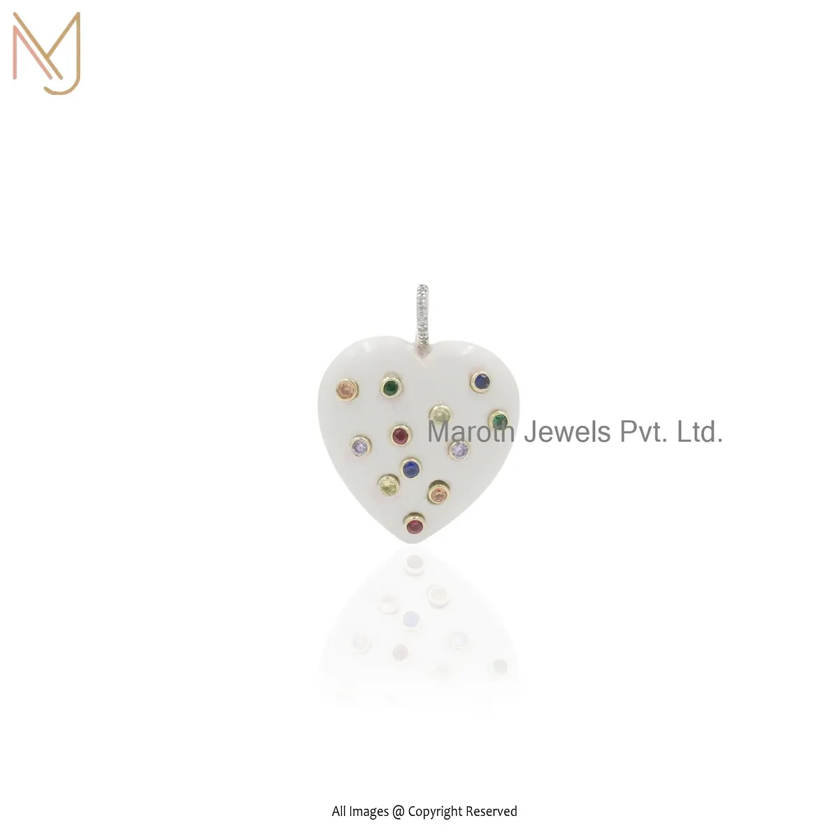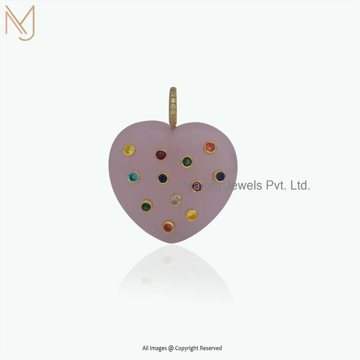 Wholesale 14K Yellow Gold Lapiz Lazuli & Multi Gemstone Heart Pendant