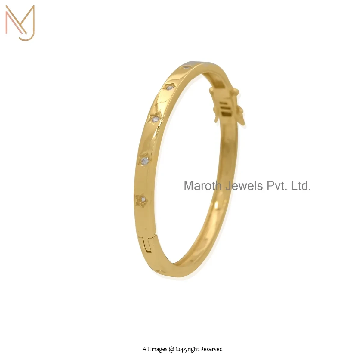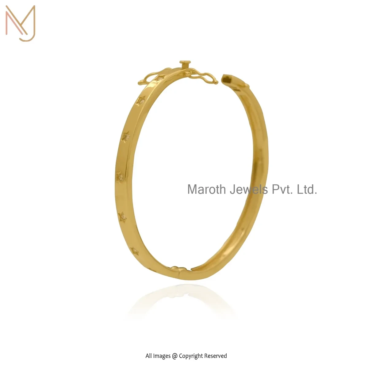 Wholesale 14K Yellow Gold Moissanite And Diamond Starburst Bangle