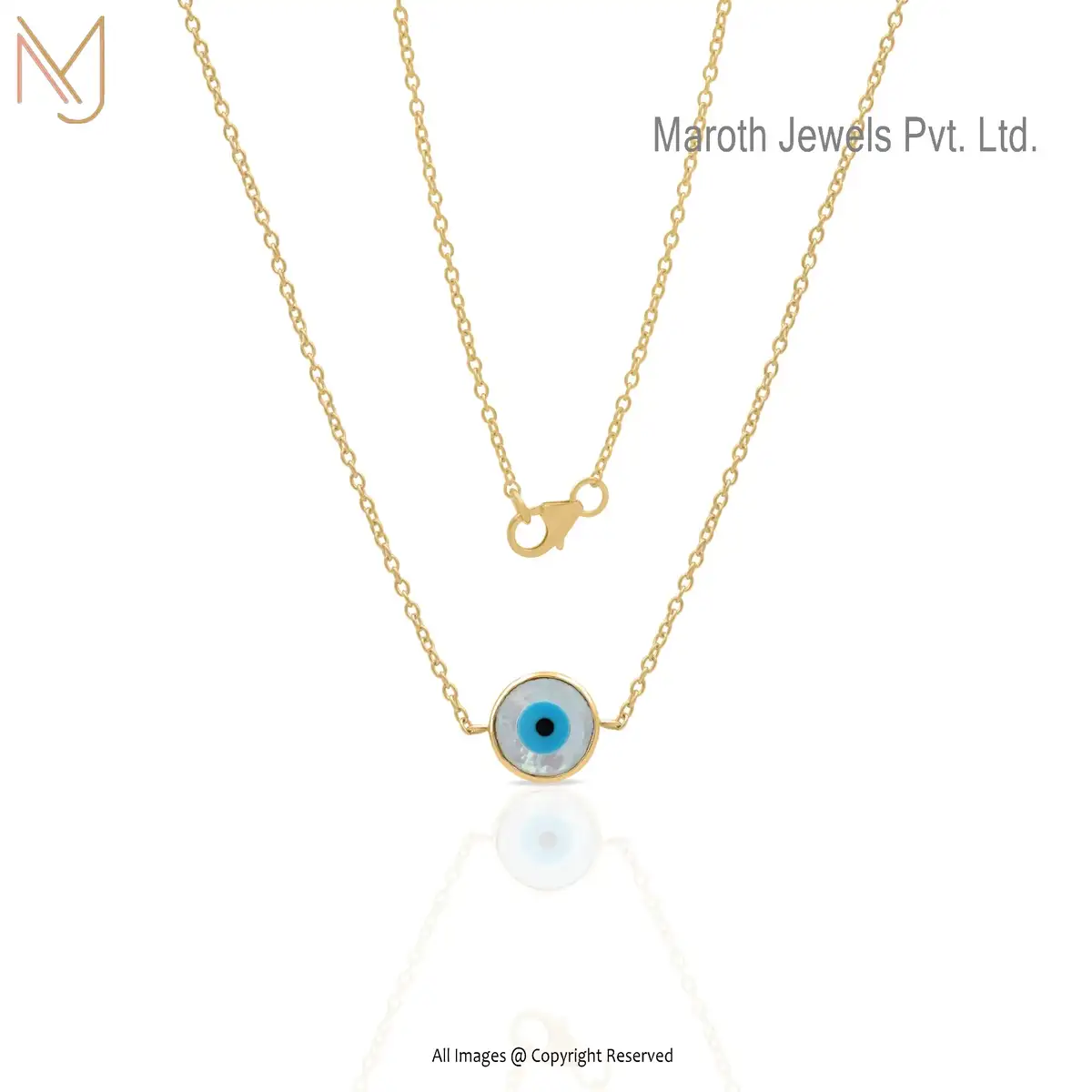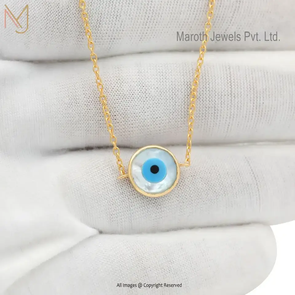 Wholesale 14k Yellow Gold Mother Of Pearl & Enamel Evil Eye Pendant Chain Necklace