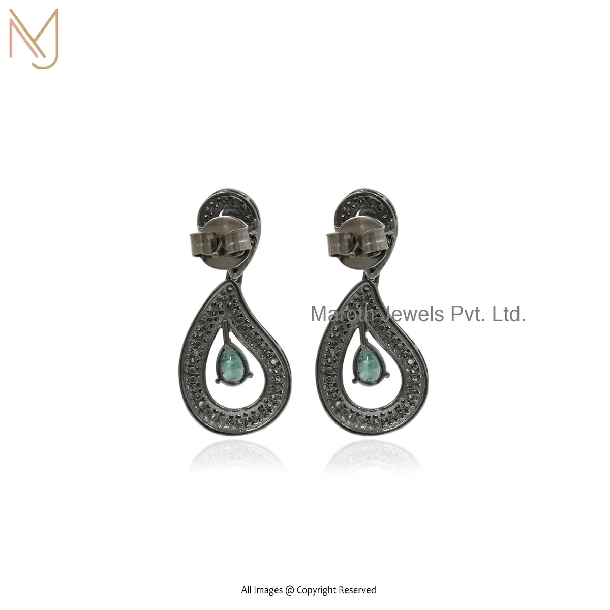 Wholesale 14K Yellow Gold Pave Diamond And Emerald Gemstone Drop Earring