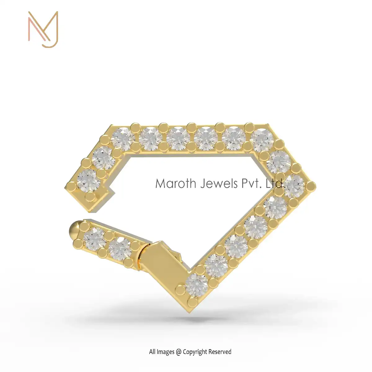 Wholesale 14K Yellow Gold Pave Diamond Enhancer Lock Charm Holder Jewelry