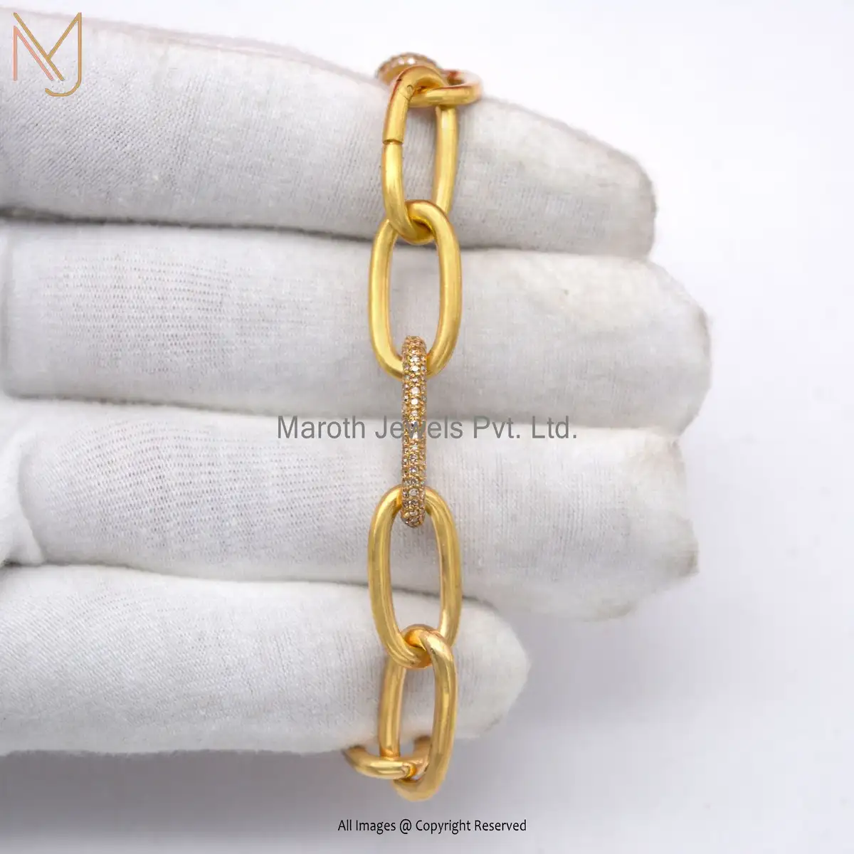 Wholesale 14K Yellow Gold Pave Diamond Oval Link Chain Bracelet Jewelry