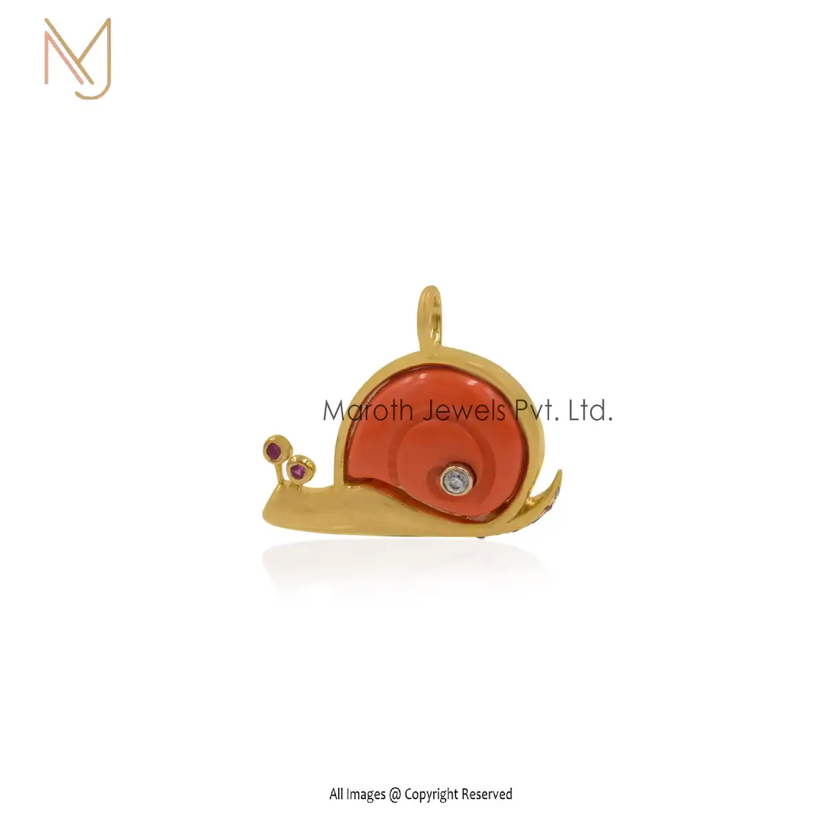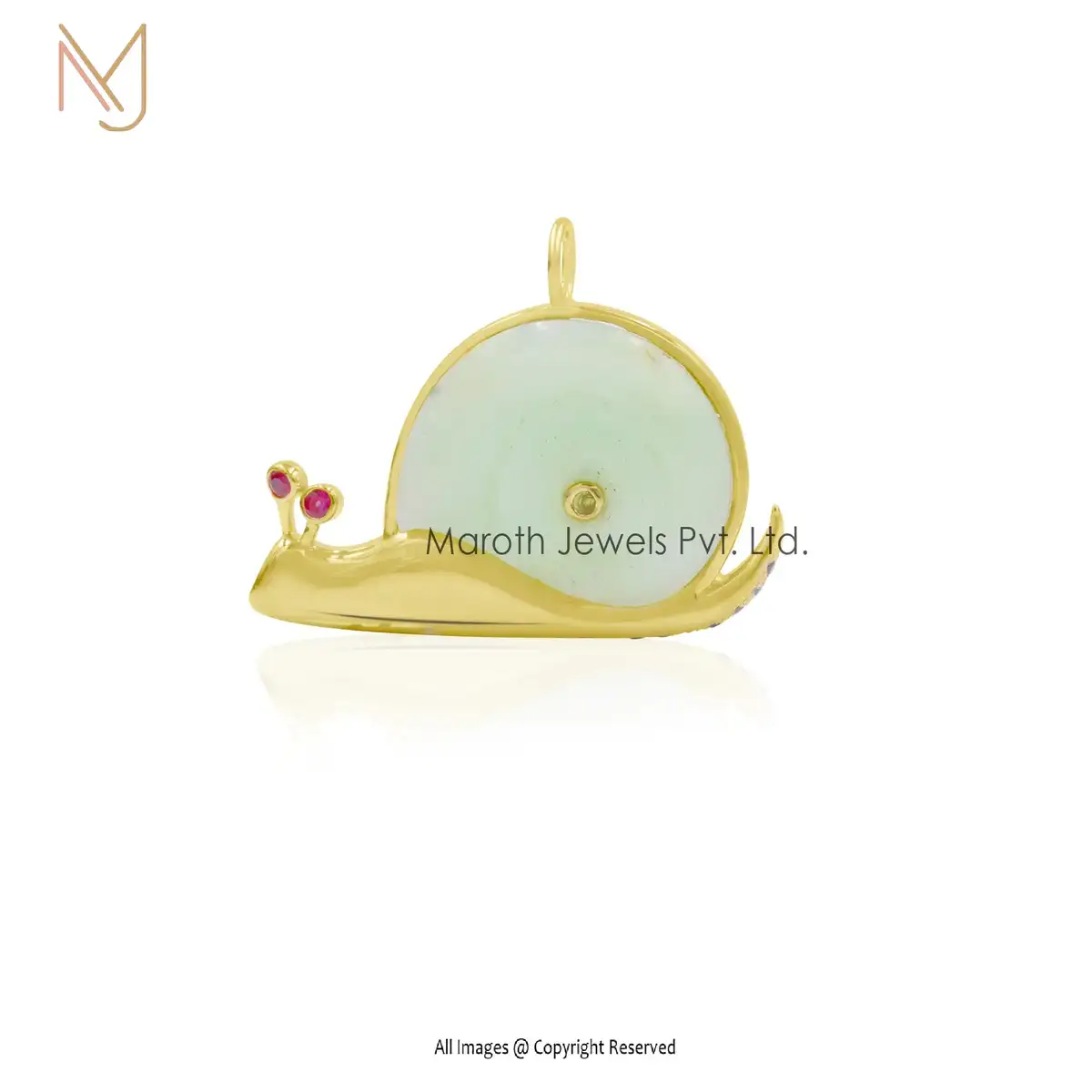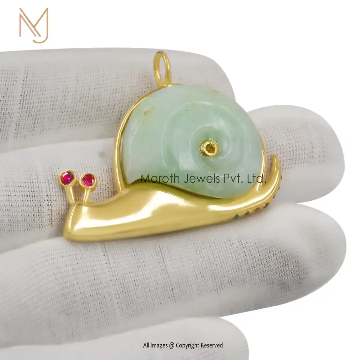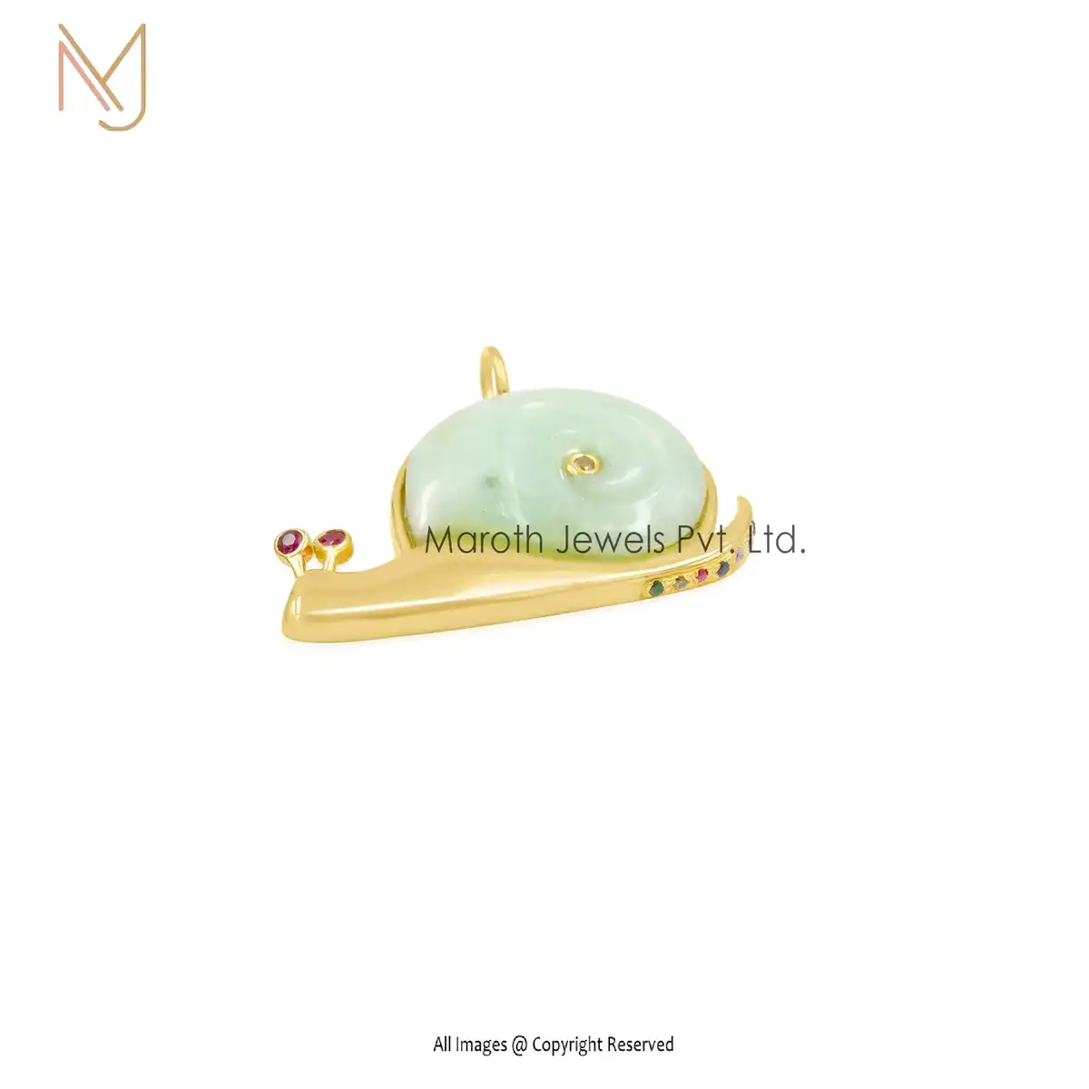Wholesale 14K Yellow Gold Peruvian Opal & Ruby & White CZ OR Multi Gemstone Snail Pendant Jewely