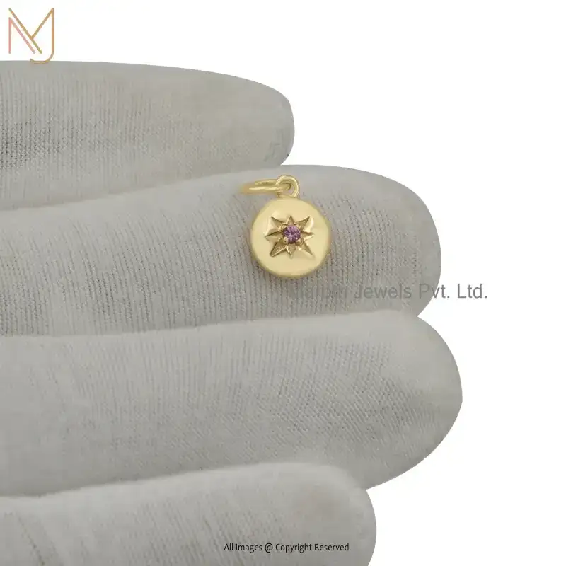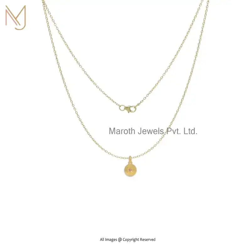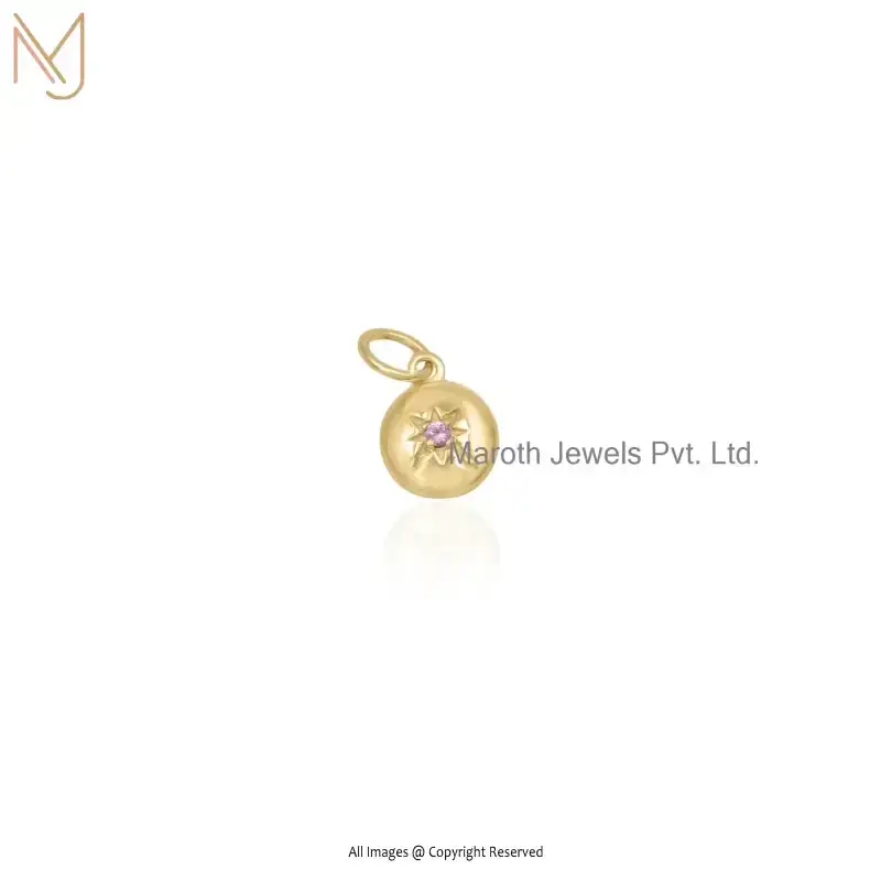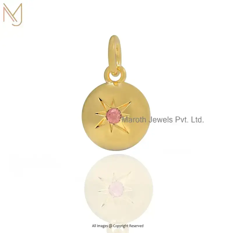 Wholesale 14K Yellow Gold Pink Sapphire Star Round Disc Pendant Jewelry