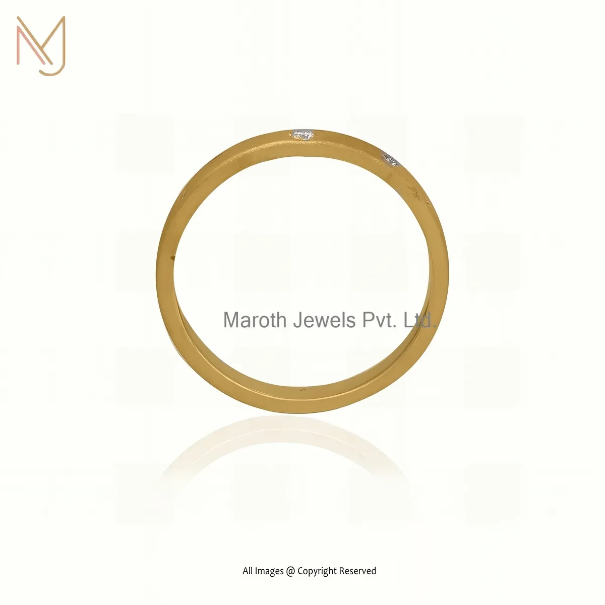 Wholesale 14K Yellow Gold Round Disc Diamond & Moissanite Band Ring