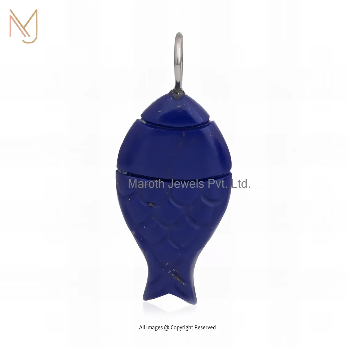 Wholesale 14K Yellow Gold Ruby Cubic Zircon & Blue Chalcedony Fish Pendant