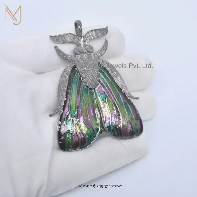 Wholesale 925 Silver Black Rhodium Multi Enamel Butterfly Incest Pendant Jewelry