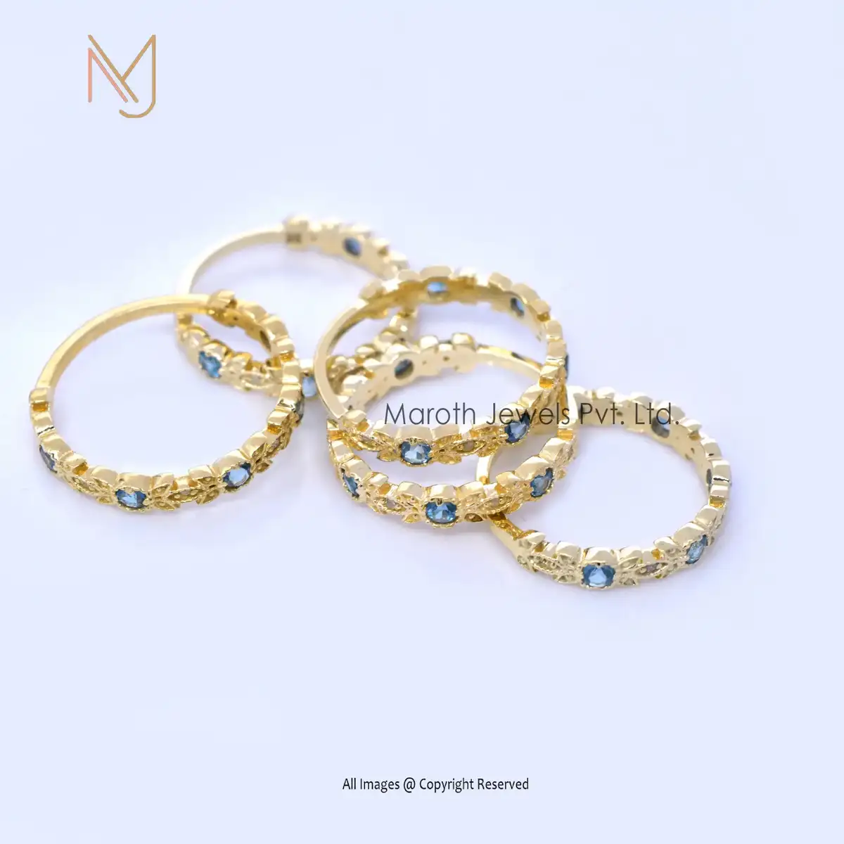 Wholesale 925 Silver Gold Diamond And Blue Topaz Gemstone Ring Jewelry