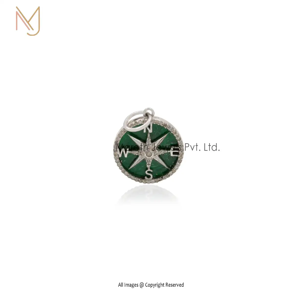 Wholesale 925 Silver Natural Silver Blue Labradorite & White CZ Compass Pendant Jewelry